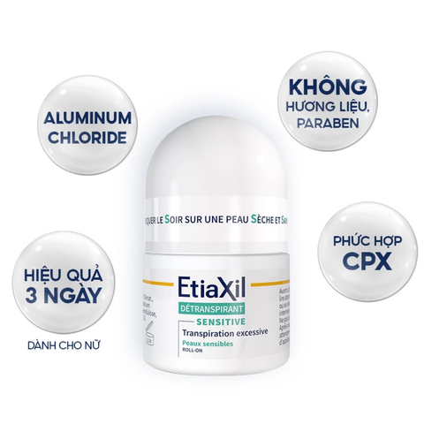 Etiaxil Lăn khử mùi da nhạy cảm Detranspirant Sensitive Peaux Sensibles Roll-on (Xanh) 15ml