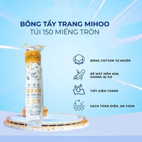 Mihoo Bông tẩy trang 150 miếng tròn