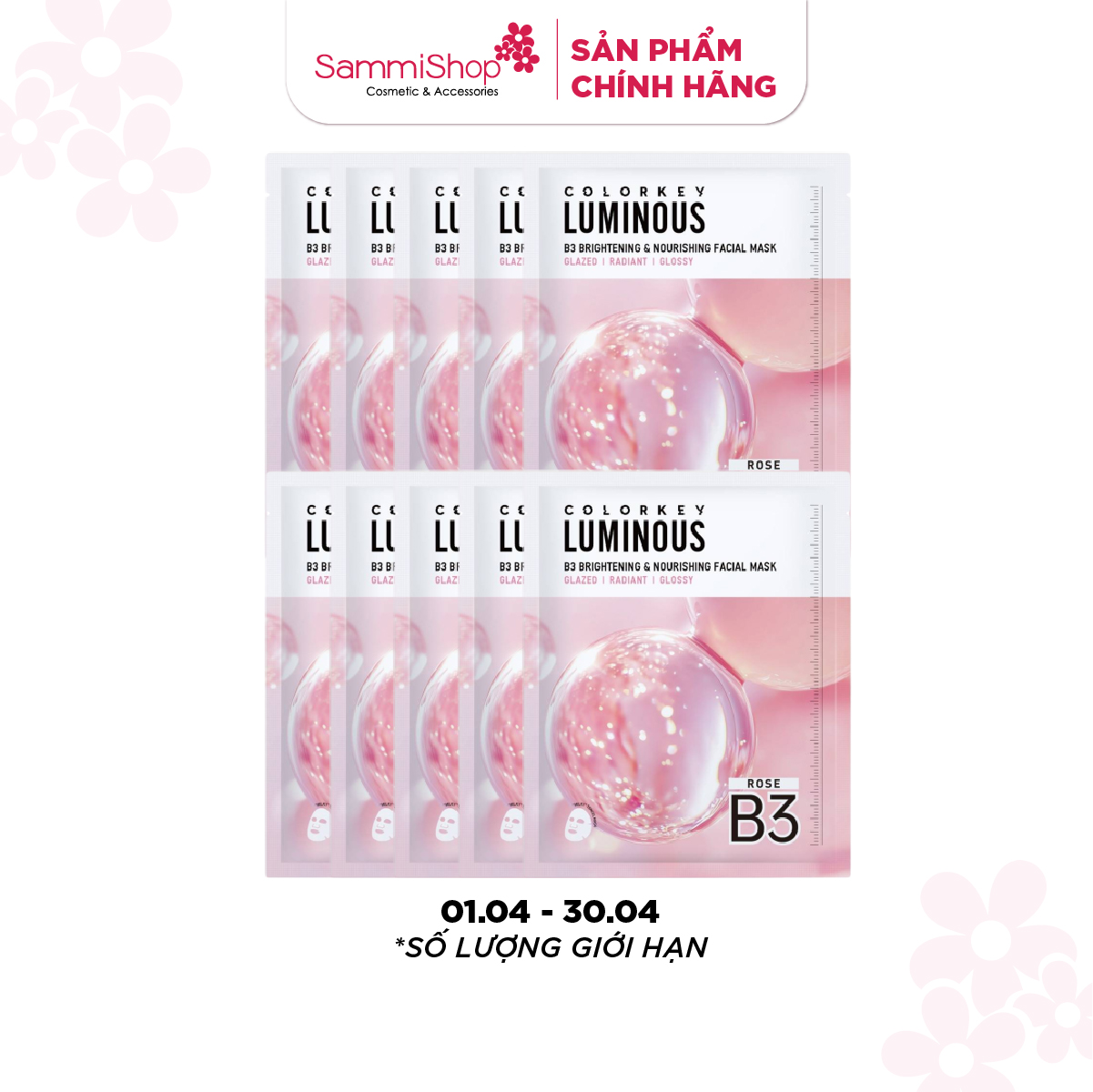 01.04-30.04 Combo 10 COLORKEY Mặt nạ giấy Luminous B3 Facial Mask 30ml