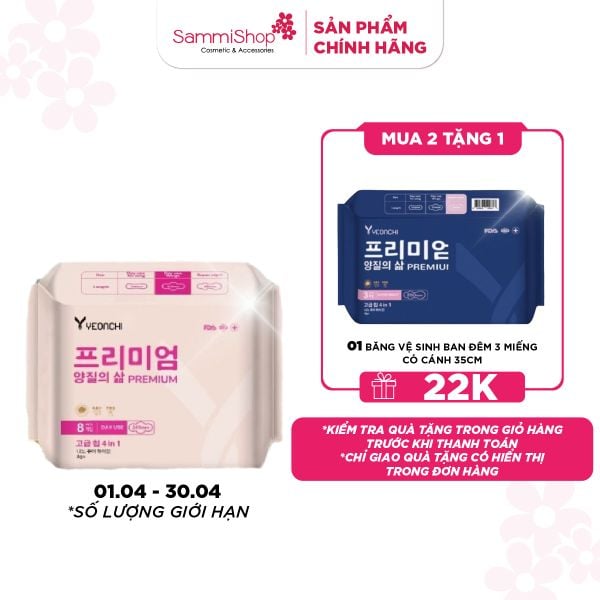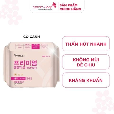 Yeonchi Băng vệ sinh ban ngày Premium 8 miếng có cánh với lớp bề mặt từ cotton hữu cơ, thân thiện với làn da, được sản xuất với công nghệ bảo vệ toàn diện giúp tuyệt đối an toàn, hỗ trợ ngăn ngừa bệnh phụ khoa, tăng cường lưu thông máu, giảm đau bụng trong kỳ kinh nguyệt.