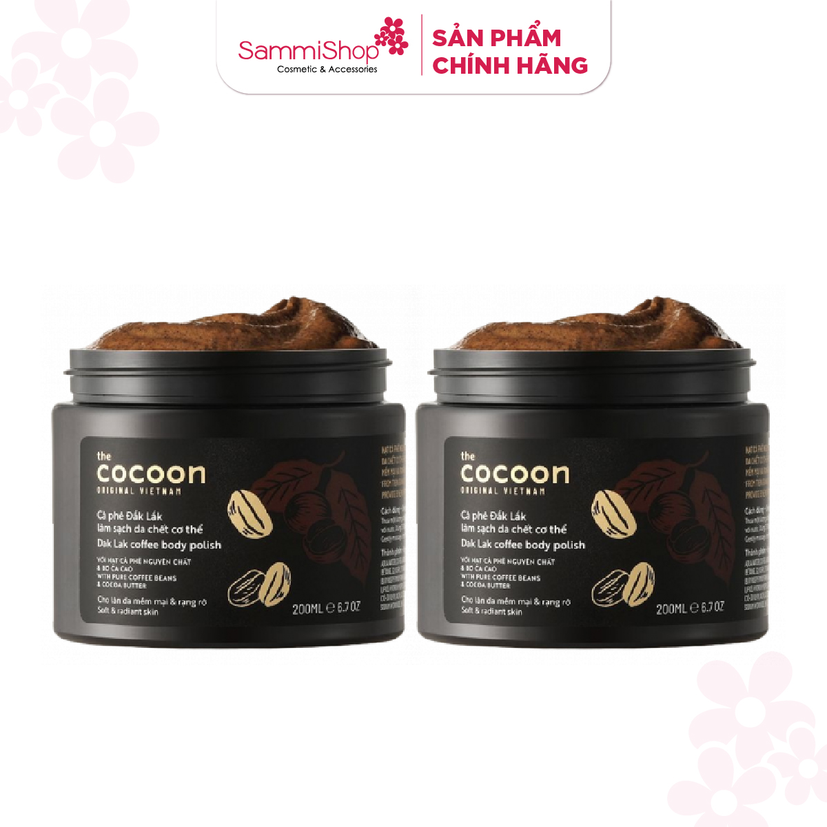 Tẩy da chết Cocoon cà phê Đắk Lắk là sản phẩm được tạo từ những hạt cà phê nguyên chất xay nhuyễn, hòa quyện cùng bơ cacao Tiền Giang giúp loại bỏ tế bào chết hiệu quả, làm đều màu da, mang lại năng lượng, giúp da trở nên mềm mại và rạng rỡ.