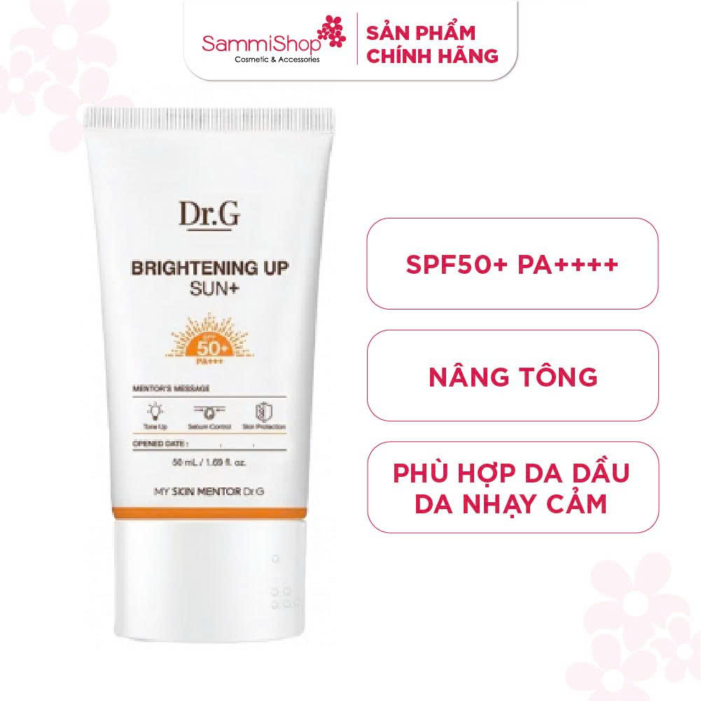 Kem chống nắng Dr.G Brightening Up Sun+ SPF50+ PA+++ là kem chống nắng vật lý lai hóa học, đem đến hiệu quả bảo vệ da tốt hơn. Đồng thời kem chống nắng này còn có khả năng nâng tông tự nhiên và kiềm dầu hiệu quả suốt 8h.