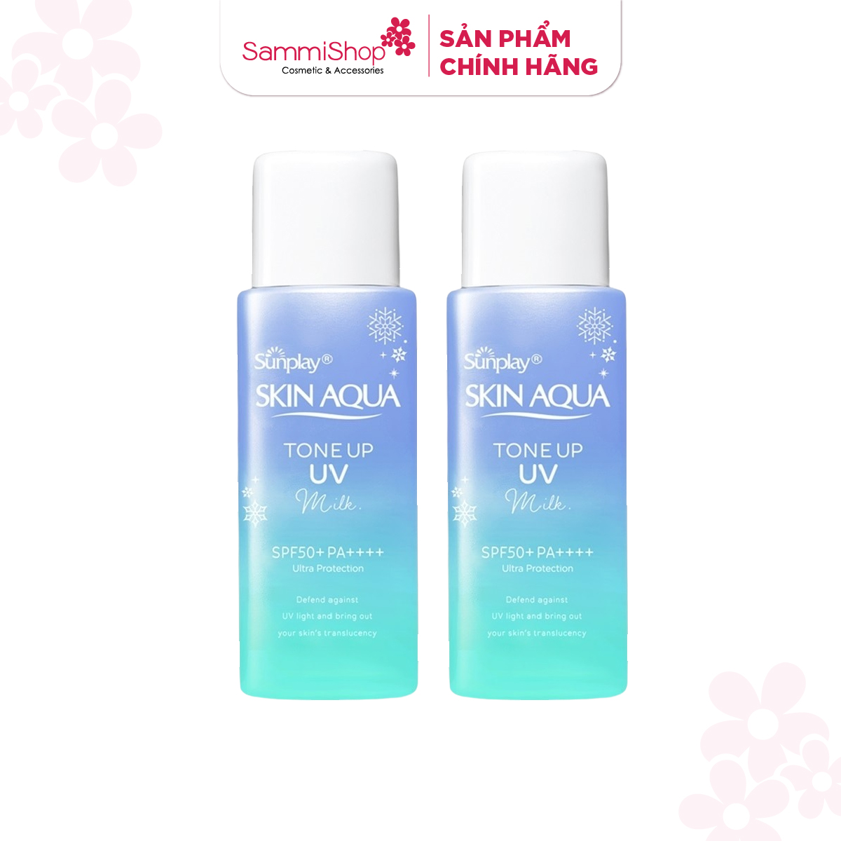 Sunplay Sữa chống nắng Skin Aqua Tone Up UV Milk Blue SPF50+ PA++++ 50g với sự hòa quyện sắc xanh trong trẻo và sắc trắng trong suốt tạo nên sắc xanh tinh khôi, hiệu chỉnh tông da vàng tối màu, che phủ khuyết điểm đỏ, nâng tông da trắng sáng đều màu.
