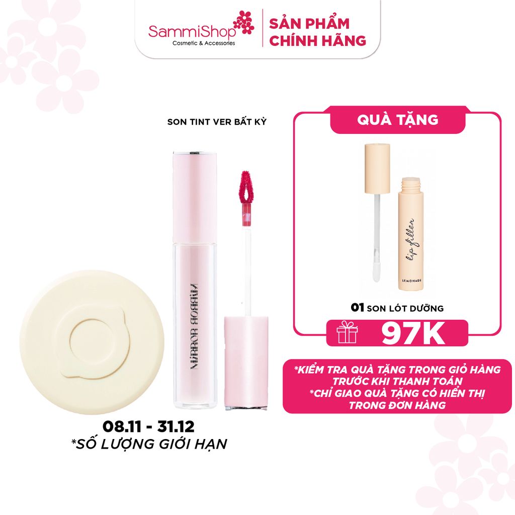 Son tint bóng Lemonade Mirror Mirror Water Tint là dòng son tint bóng có kết cấu mỏng nhẹ như serum, biến hoá bờ môi của bạn căng mọng và tràn đầy sức sống.