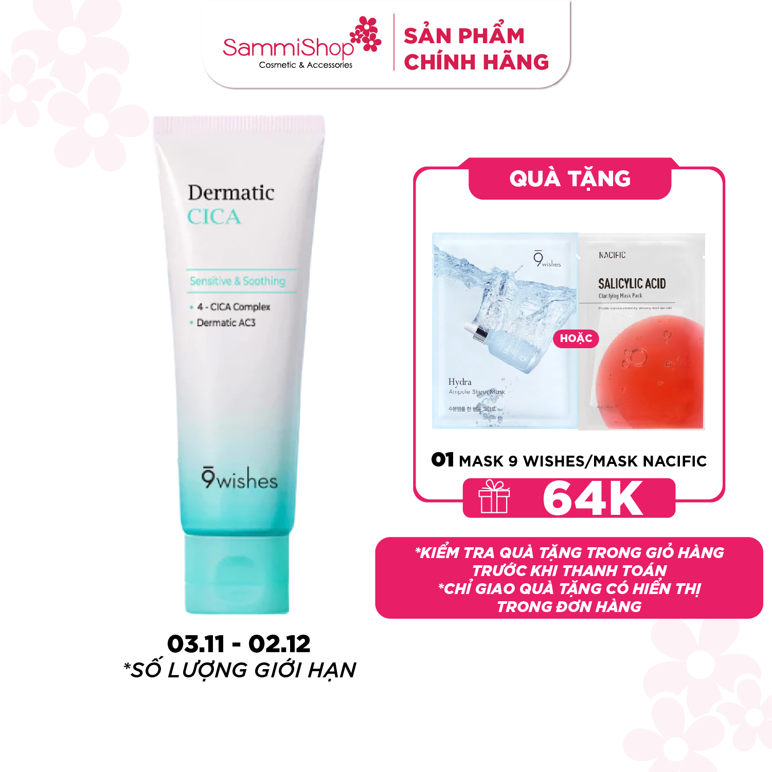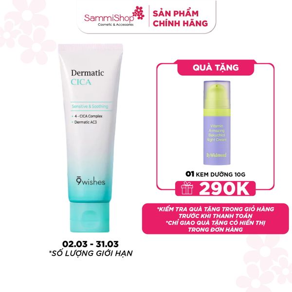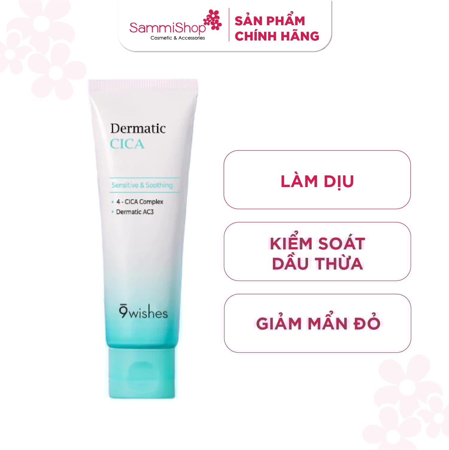 9 Wishes Kem dưỡng da Dermatic Cica Cream 50ml hỗ trợ làm dịu và kiểm soát dầu thừa, kết cấu mỏng nhẹ không gây bết dính.