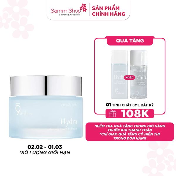 Gel dưỡng ẩm 9 Wishes Hydra Ampule Cream là dòng sản phẩm đến từ thương hiệu mỹ phẩm 9 Wishes của Hàn Quốc. Gel dưỡng ẩm có tác dụng cấp nước cho da, sản phẩm Best -Seller của Olive Young Hàn Quốc và nhận được rất nhiều giải thưởng uy tín như: Amazon Choice 2020, Allure Choice 2022,...