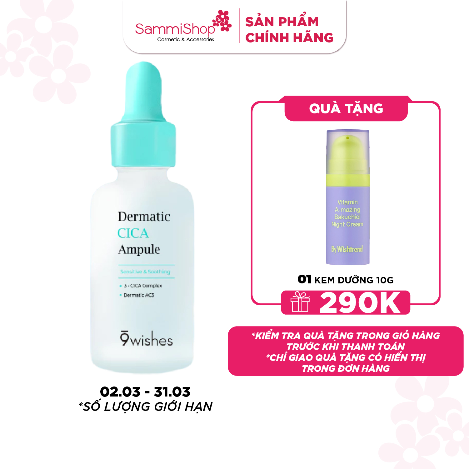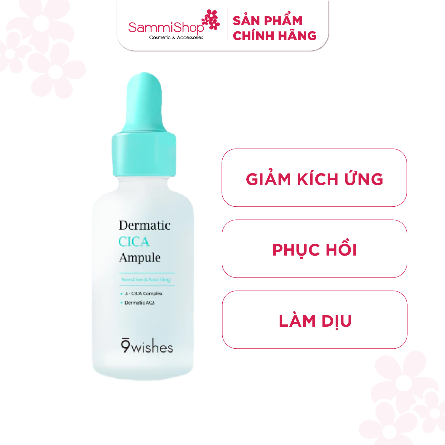 9 Wishes Tinh chất Dermatic Cica Ampule 30ml hỗ trợ kháng viêm và giảm kích ứng, từ đó phục hồi và làm dịu cho làn da