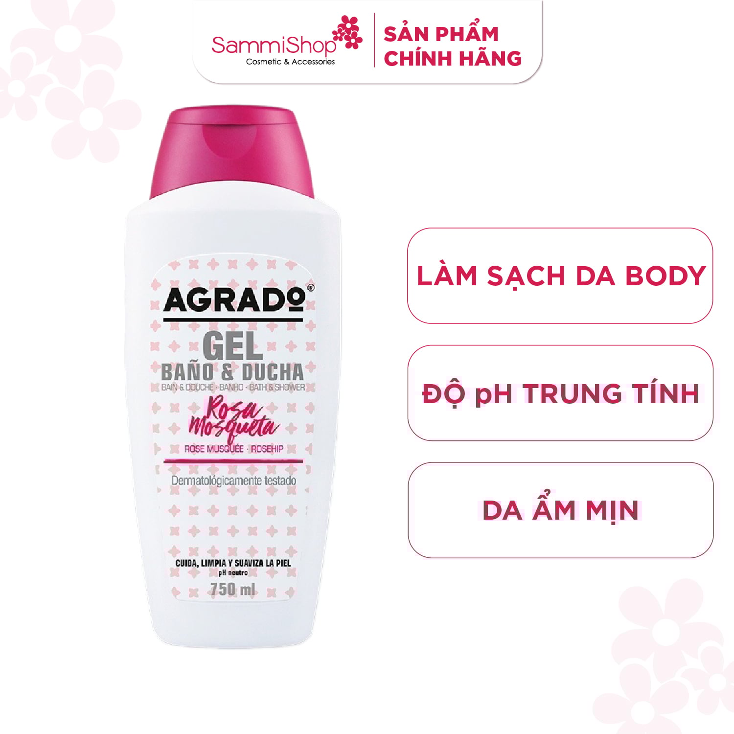 Sữa tắm Agrado Rosa Mosqueta với thành phần có chứa dầu tầm xuân giúp chăm sóc và cải thiện làn da. Có độ pH trung tính, phù hợp để sử dụng hàng ngày.