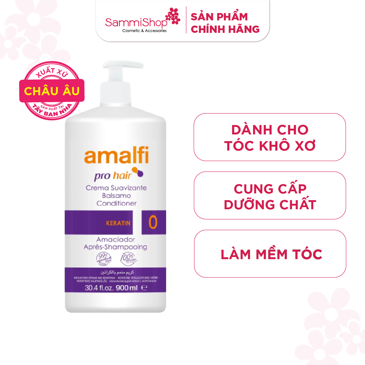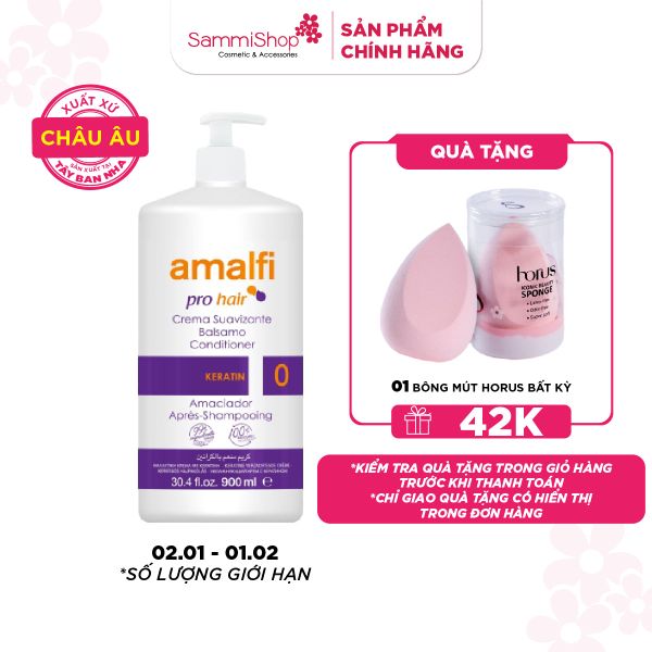 Amalfi Dầu xả Keratin Conditioner 900ml dưỡng tóc chuyên sâu với thành phần Keratin duy trì độ ẩm mượt cho tóc.