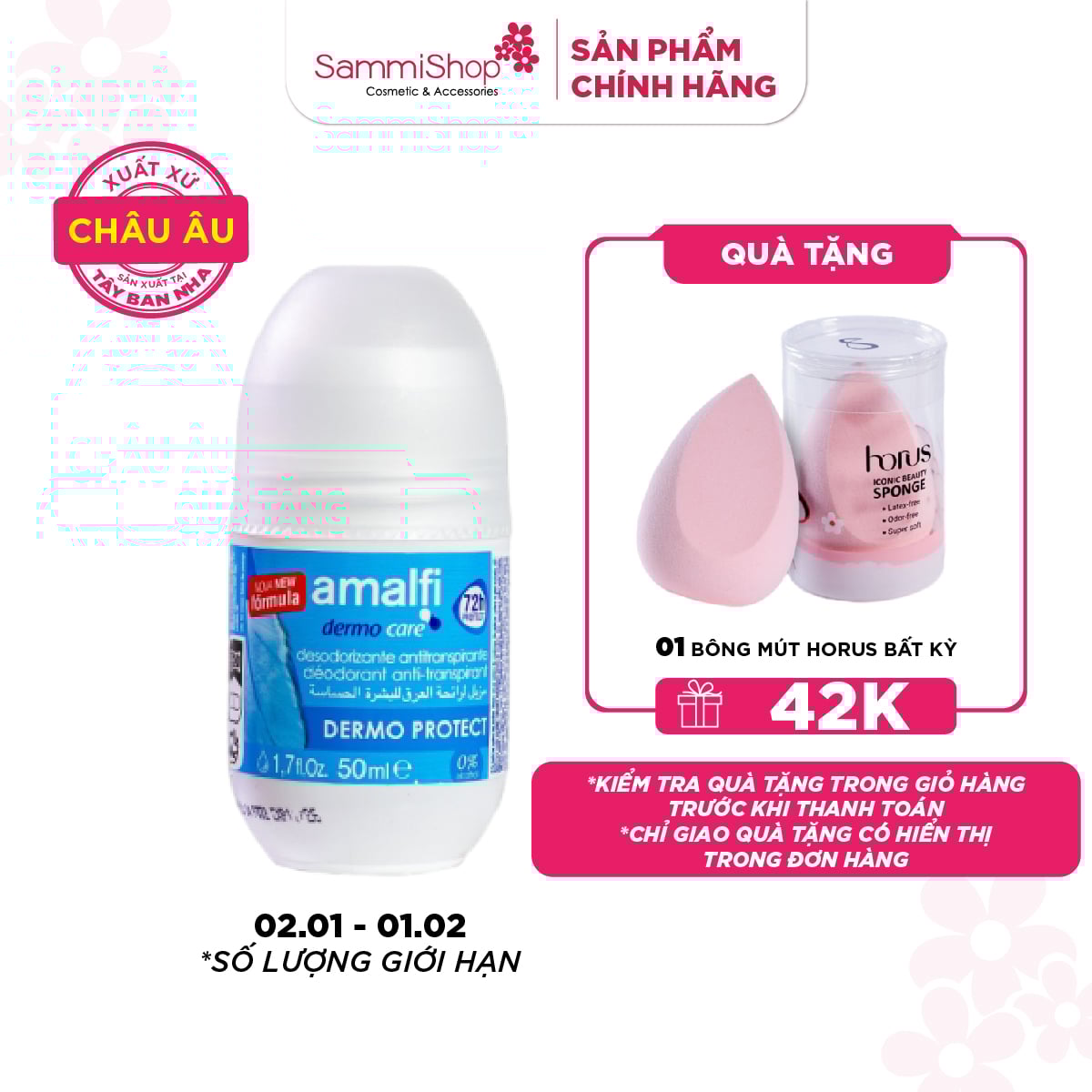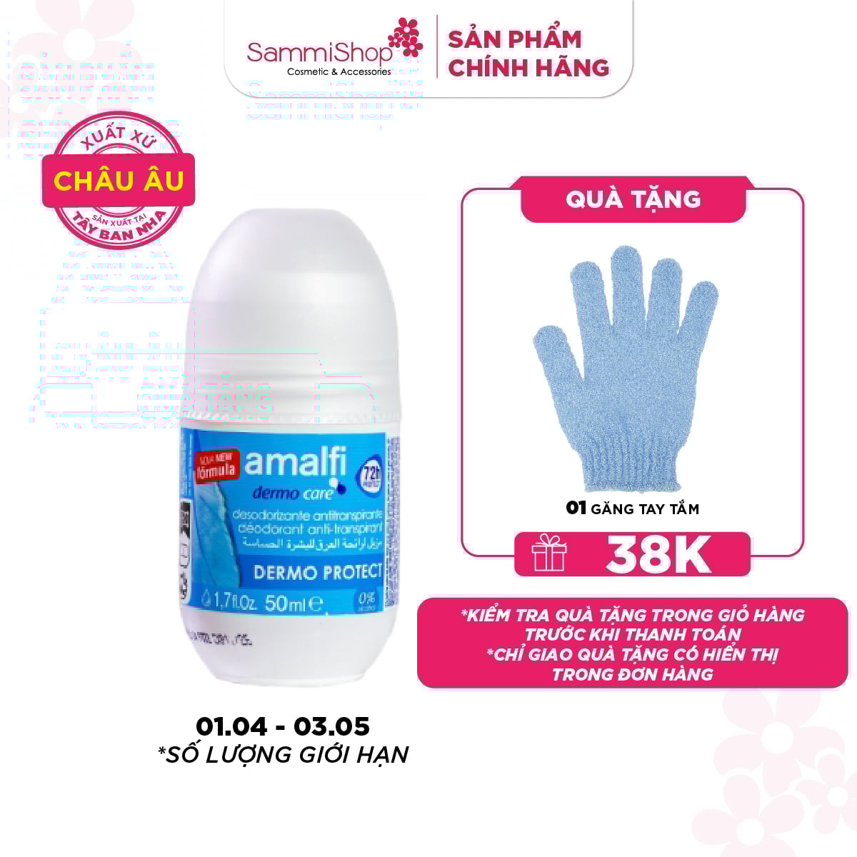 Amalfi Lăn khử mùi Dermo Protect Antiperspirant Deodorant 50ml giúp ngăn mùi và mồ hôi trong suốt 72h, làm dịu da và chống oxy hoá