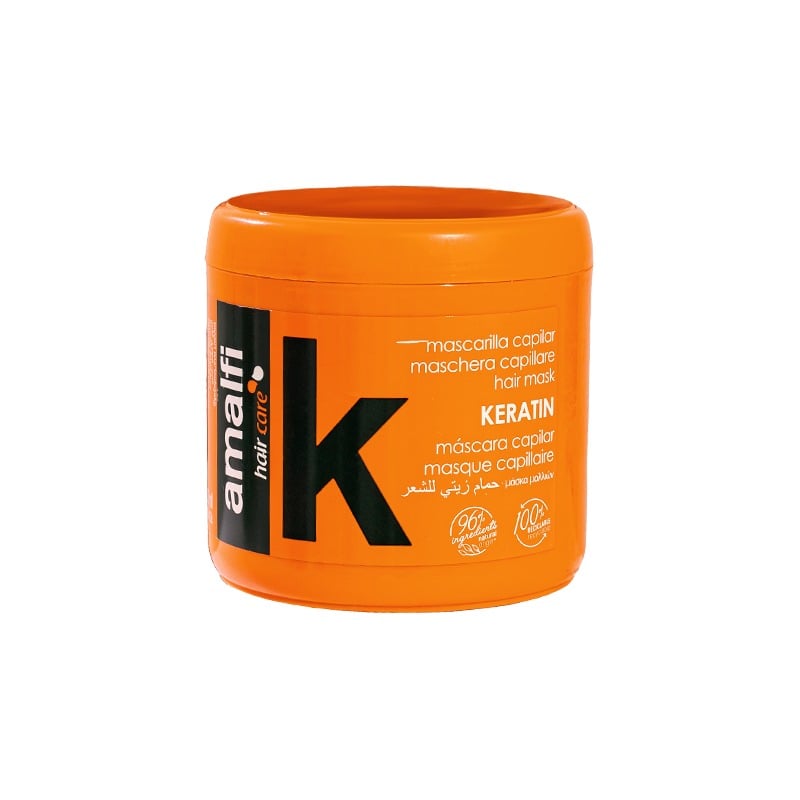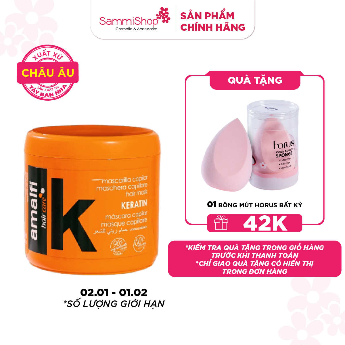 Amalfi Mặt nạ dưỡng tóc Keratin Hair Mask 500ml giúp dưỡng ẩm, phục hồi và bảo vệ mái tóc. Phục hồi và tái tạo keratin bị mất trong tóc, giúp tóc chắc khỏe, giảm gãy rụng và tăng độ bóng mượt.