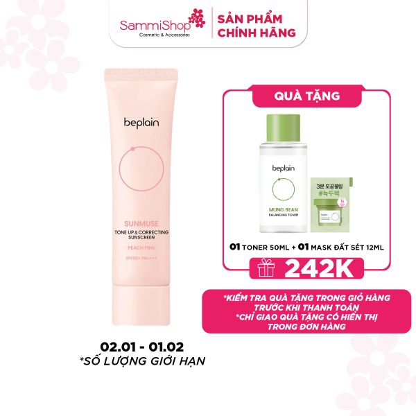 Beplain Kem chống nắng Sunmuse Tone Up & Correcting Sunscreen Peach Pink SPF50+ PA++++ 50ml với khả năng nâng tone hồng đào, mang lại hiệu ứng "đẹp tự nhiên" sau mỗi lần sử dụng.