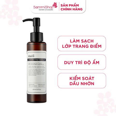 Dầu Tẩy Trang Klairs Gentle Black Deep Cleansing Oil giúp làm sạch các lớp trang điểm trên da, kiểm soát sản xuất bã nhờn và cung cấp dinh dưỡng cho làn da, ngăn chặn tình trạng mất nước và lão hóa, cung cấp các hiệu ứng chất chống oxy hóa mạnh mẽ cho da.