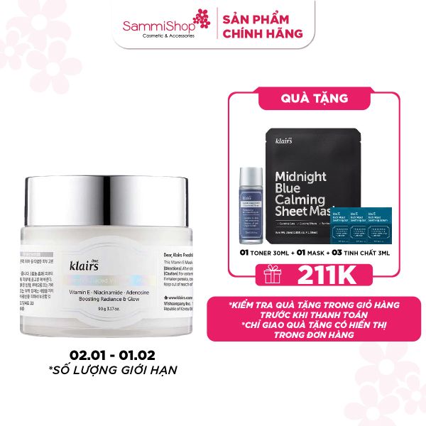 Mặt Nạ Ngủ Klairs Freshly Juiced Vitamin E Mask là sản phẩm đến đến từ thương hiệu Dear Klairs với thiết kế độc đáo 2 trong 1, vừa là mặt nạ ngủ, vừa là kem dưỡng ẩm. Cung cấp hàm lượng dồi dào Vitamin E và chất chống oxy hóa cho làn da trong suốt cả đêm dài, ngăn ngừa lão hóa và dưỡng sáng da hiệu quả.