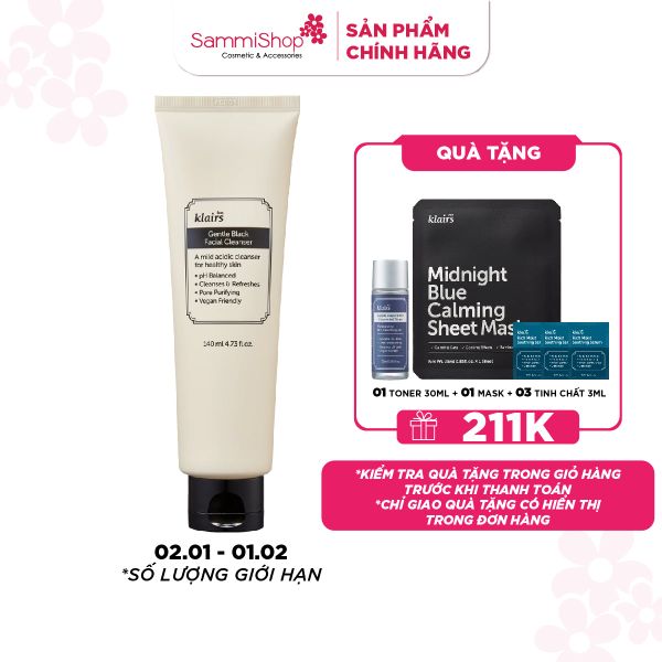 Sữa rửa mặt Klairs Gentle Black Facial Cleanser là sản phẩm sửa rữa mặt dịu nhẹ đến chứa các thành phần thiên nhiên giúp làm sạch sâu đồng thời dưỡng ẩm và nuôi dưỡng làn da khoẻ mạnh. Sản phẩm có độ pH lý tưởng 5.5 - 6.5 giúp duy trì độ ẩm tự nhiên của da, không gây cảm giác khô căng sau khi rửa mặt.
