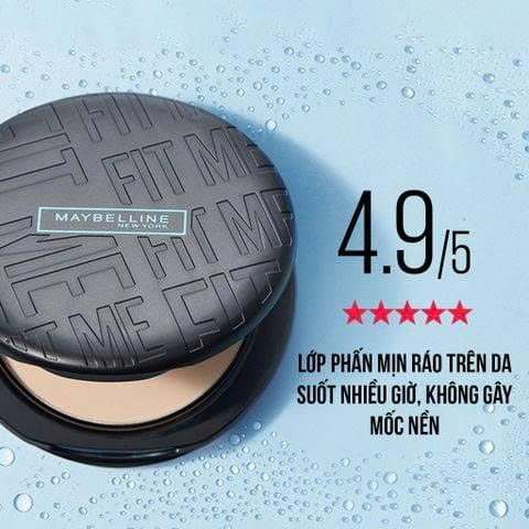 - Sau bước kem nền Fit Me/ kem che khuyết điểm Fit Me, sử dụng Maybelline Fit Me Matte + Poreless Powder để khóa lớp trang điểm trên da.