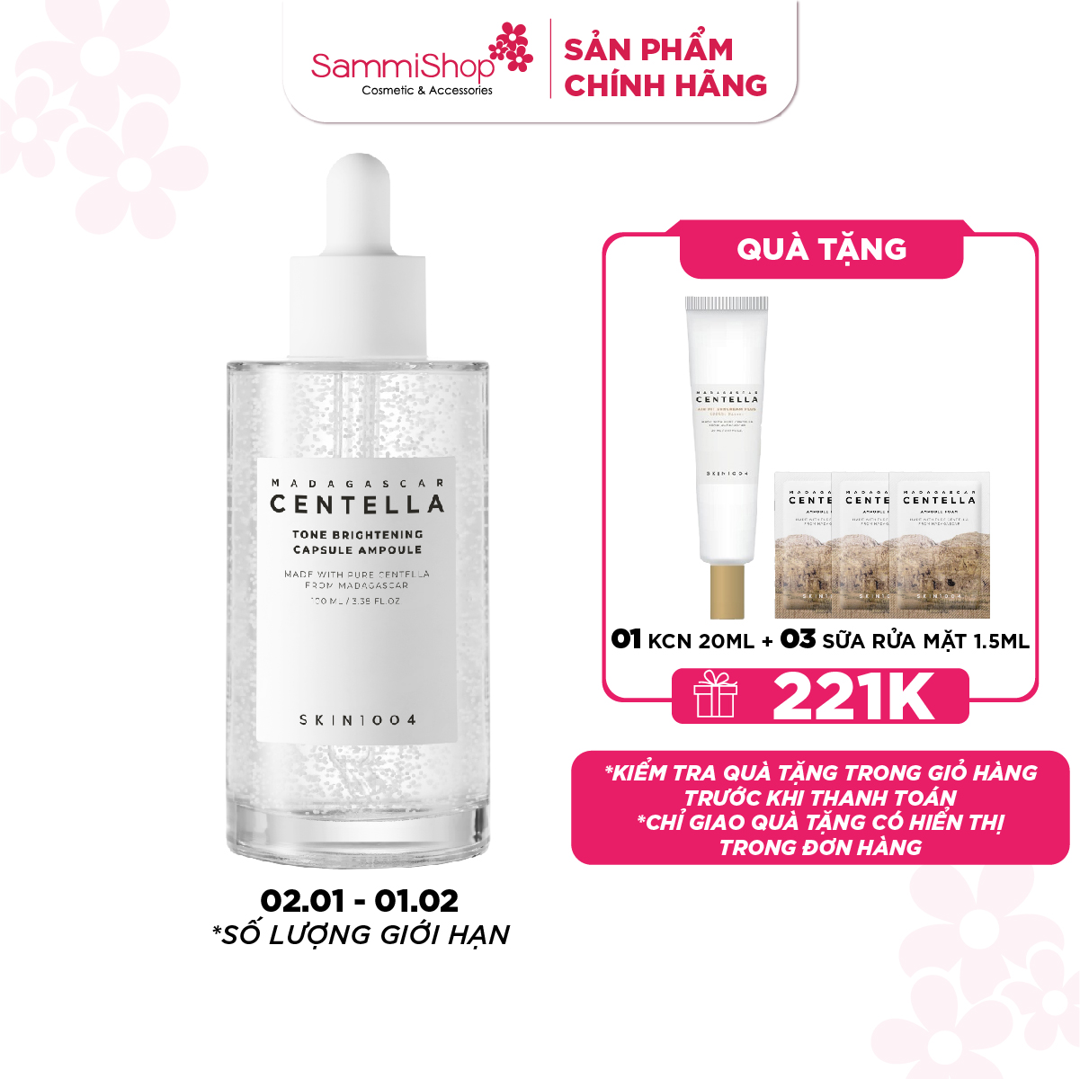 Tinh chất Skin1004 Madagascar Centella Tone Brightening Capsule Ampoule giúp dưỡng trắng da, mờ thâm sạm, căng bóng, cải thiện sắc tố da rõ rệt, lành tính và nhẹ nhàng.