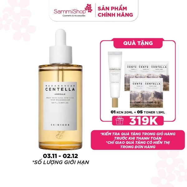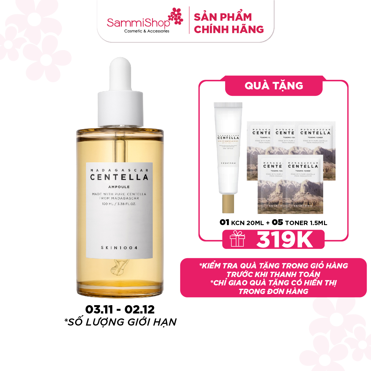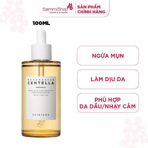 Tinh chất rau má hỗ trợ giảm mụn, phục hồi da Skin1004 Madagascar Centella Ampoule là dòng sản phẩm bán chạy nhất của thương hiệu chăm sóc da Skin1004 đến từ Hàn Quốc.Sản phẩm chứa chiết xuất từ rau má giúp làm dịu da, giảm sưng viêm mụn, hỗ trợ phục hồi da và chữa lành các thương tổn do mụn hoặc kích ứng gây ra, tái tạo làn da mới tươi sáng và mịn màng hơn.