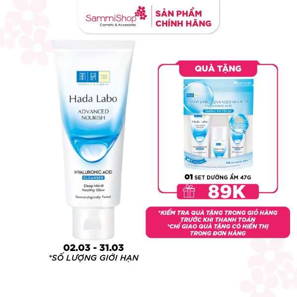Sữa rửa mặt dưỡng ẩm Hada Labo Advanced Nourish Cream Cleanser với lớp bọt mịn nhẹ nhàng rửa sạch lớp tế bào chết, bụi bẩn, bã nhờn ẩn sâu trong lỗ chân lông. Đồng thời kết hợp hệ dưỡng ẩm sâu HA, SHA, Nano HA cung cấp độ ẩm cho các lớp biểu bì, khắc phục tình trạng khô sạm do mất nước, hỗ trợ tái tạo cấu trúc đàn hồi cho làn da luôn ẩm mượt sáng mịn.