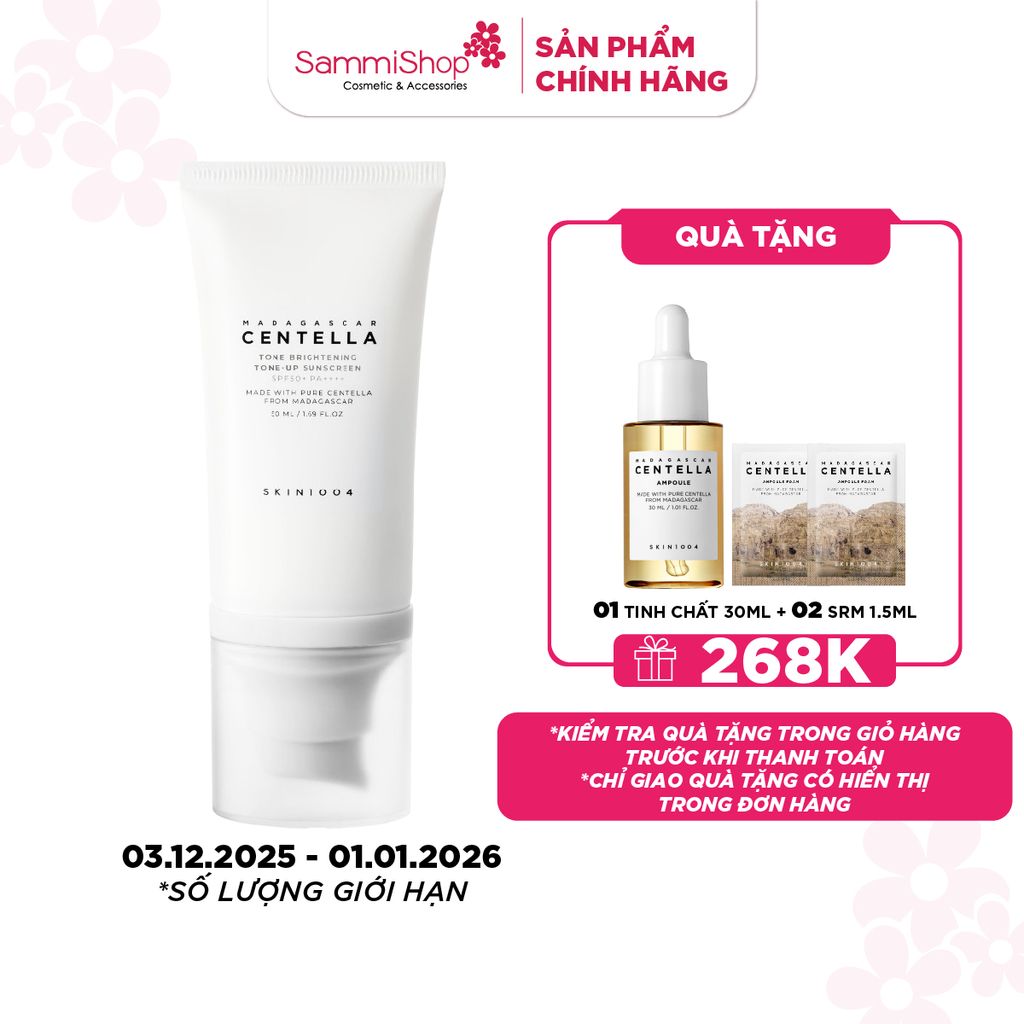 Skin1004 Kem chống nắng Madagascar Centella Tone Brightening Tone-up Suncreen SPF50+ PA++++ 50ml giúp bảo vệ da hiệu quả dưới tia UV và ánh sáng xanh. Đồng thời, làm sáng và làm đều màu da xỉn màu mang lại làn da tươi tắn và rạng rỡ.