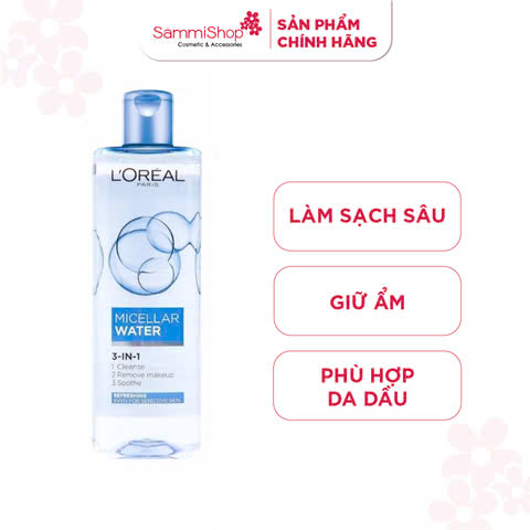 Nước tẩy trang L'Oréal Micellar Water 3-in-1 Refreshing Even For Sensitive Skin có tác dụng làm sạch, giữ ẩm và dưỡng mềm da. Ngoài ra, sản phẩm giúp lấy đi sạch cặn trang điểm nhưng không làm khô da. Hơn thế, thành phần an toàn, không chứa cồn và công nghệ tiên tiến giúp da giữ nước, thông thoáng, mềm mượt chỉ trong một bước.