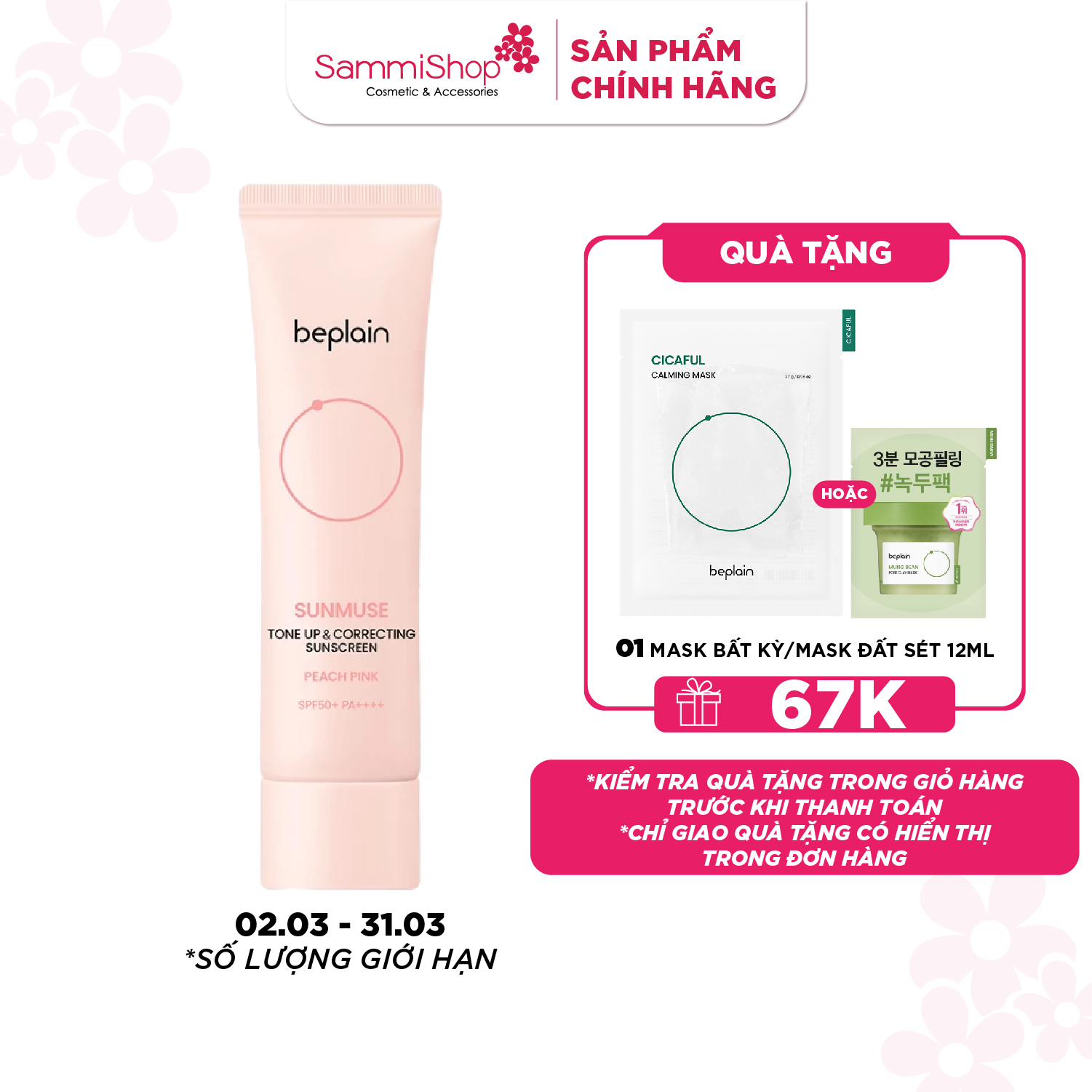Beplain Kem chống nắng Sunmuse Tone Up & Correcting Sunscreen Peach Pink SPF50+ PA++++ 50ml với khả năng nâng tone hồng đào, mang lại hiệu ứng "đẹp tự nhiên" sau mỗi lần sử dụng.