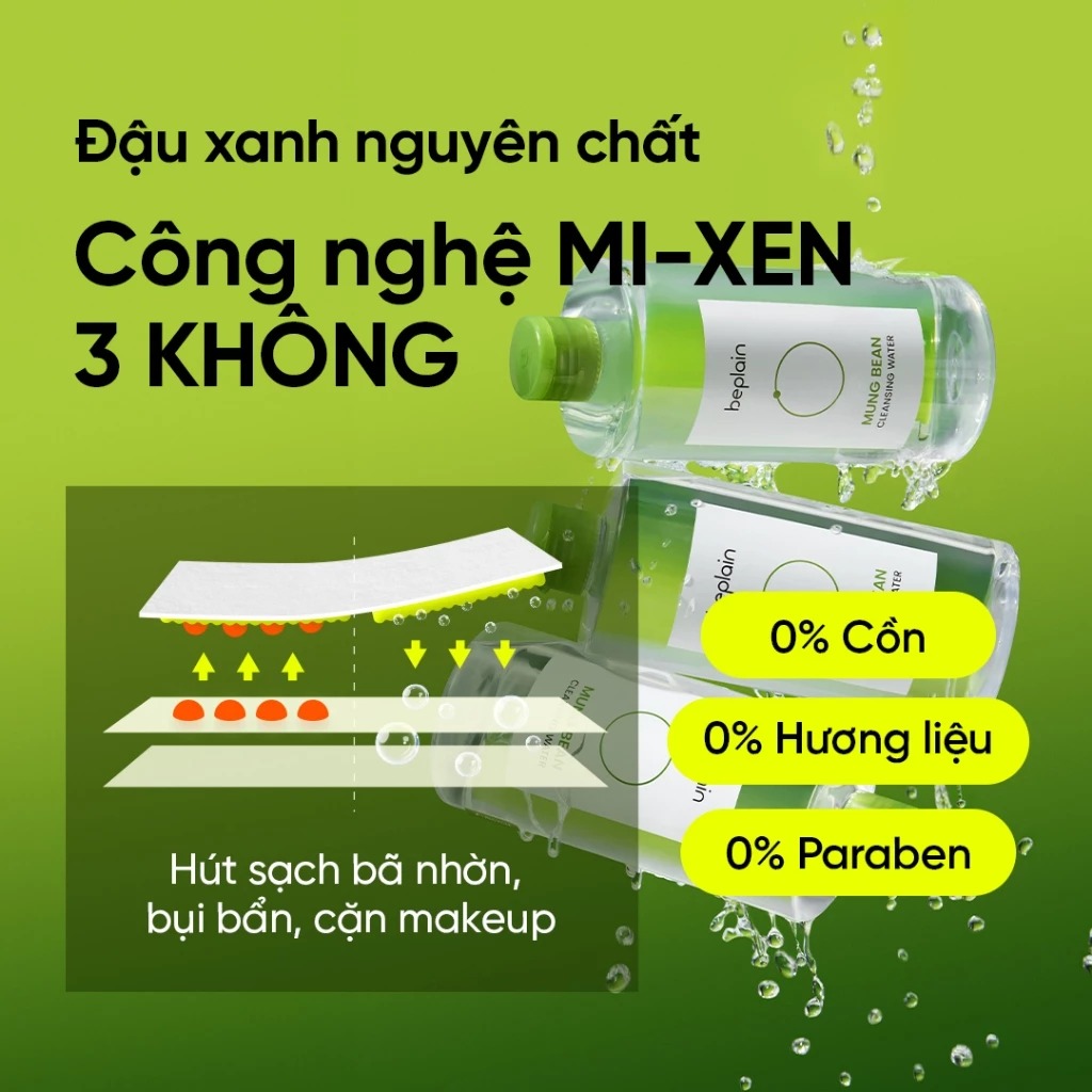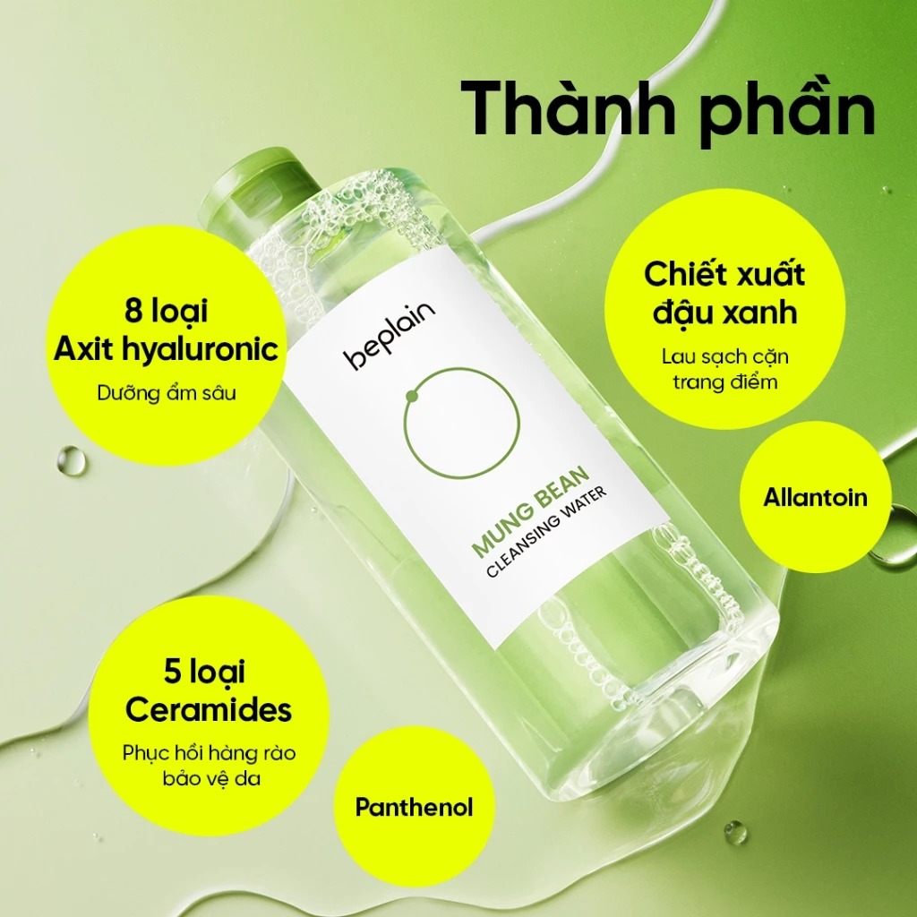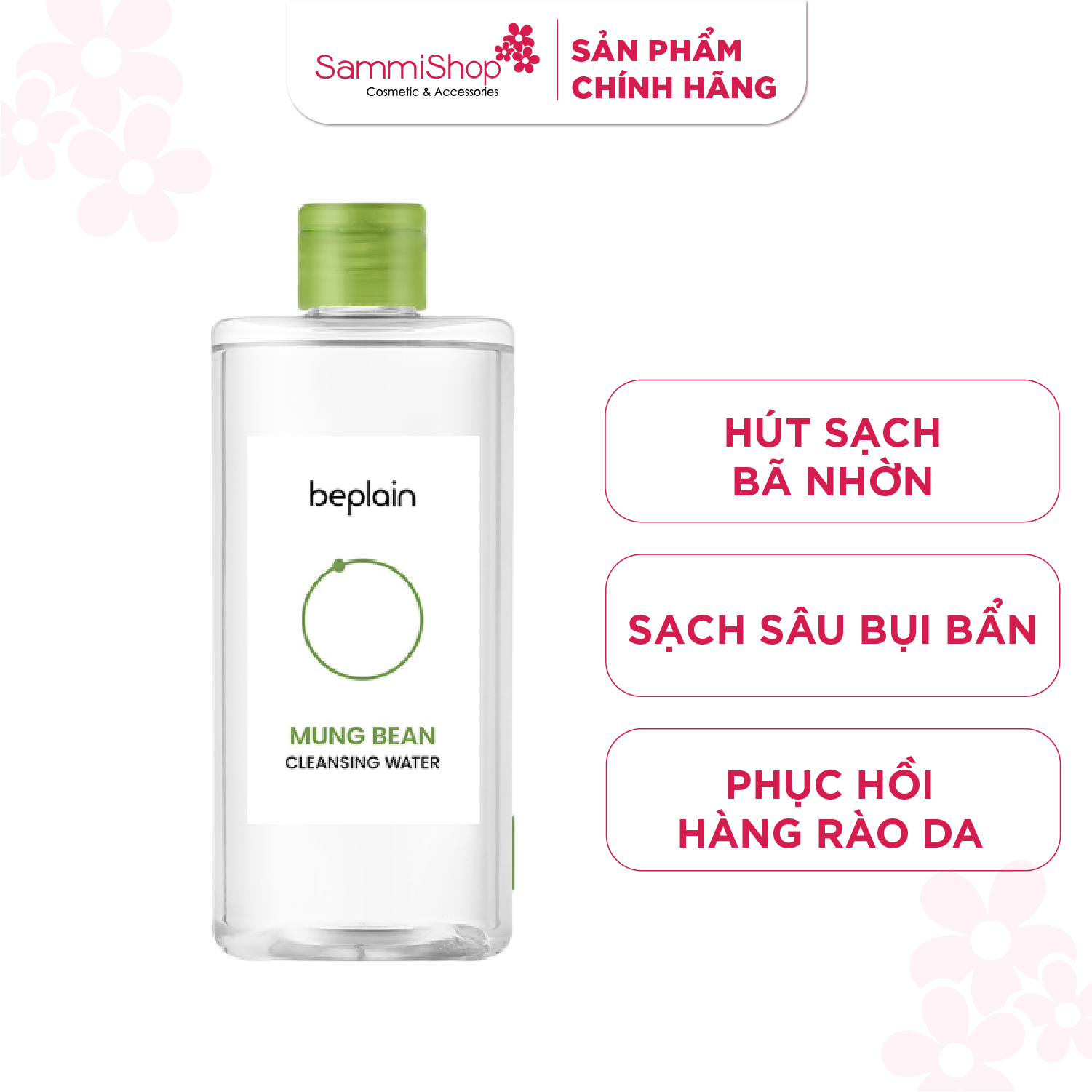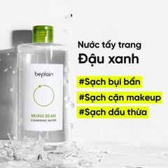 Beplain Nước tẩy trang Mung Bean Cleansing Water 400ml làm sạch lớp makeup cứng đầu, loại bỏ bã nhờn nhanh chóng với công nghệ Micellar
