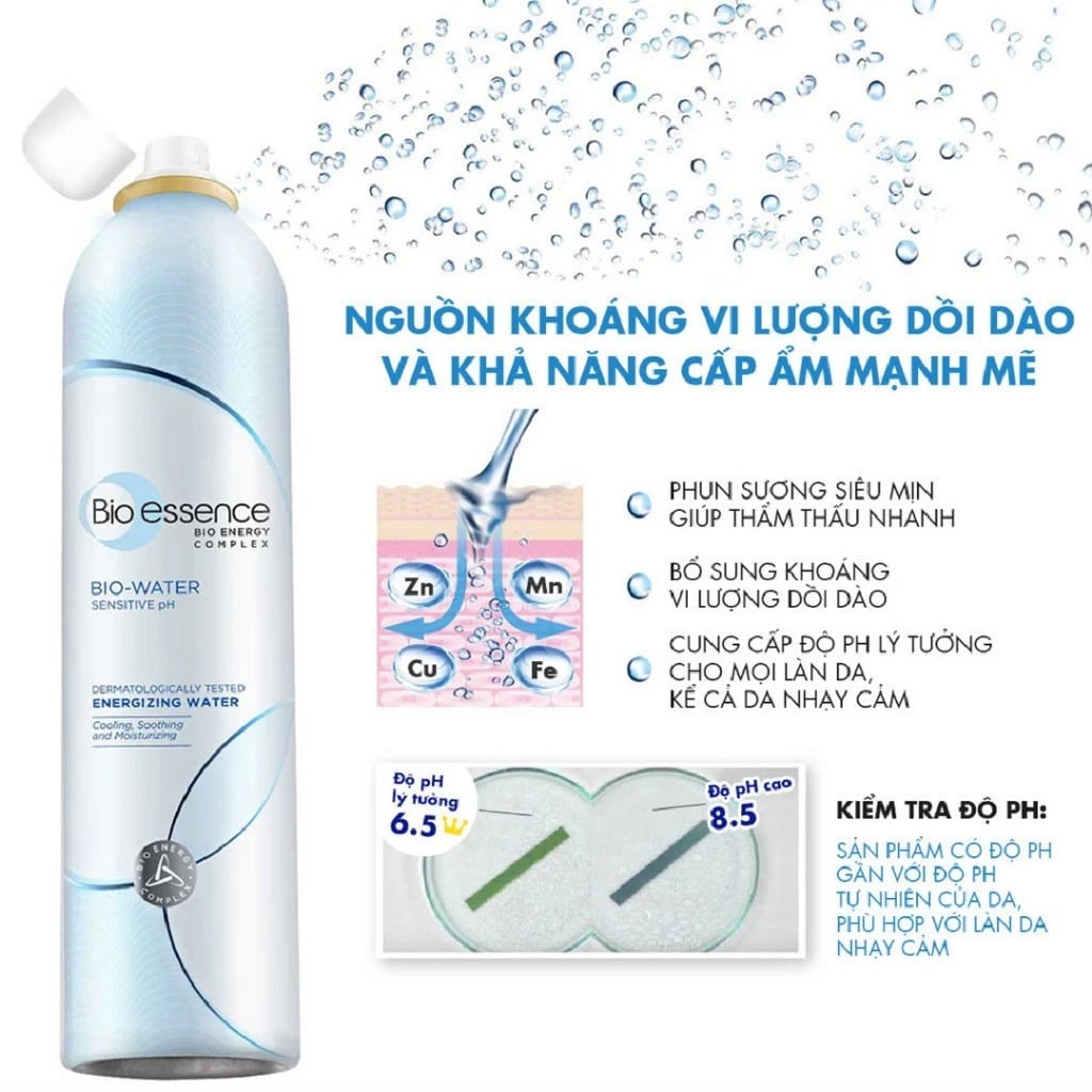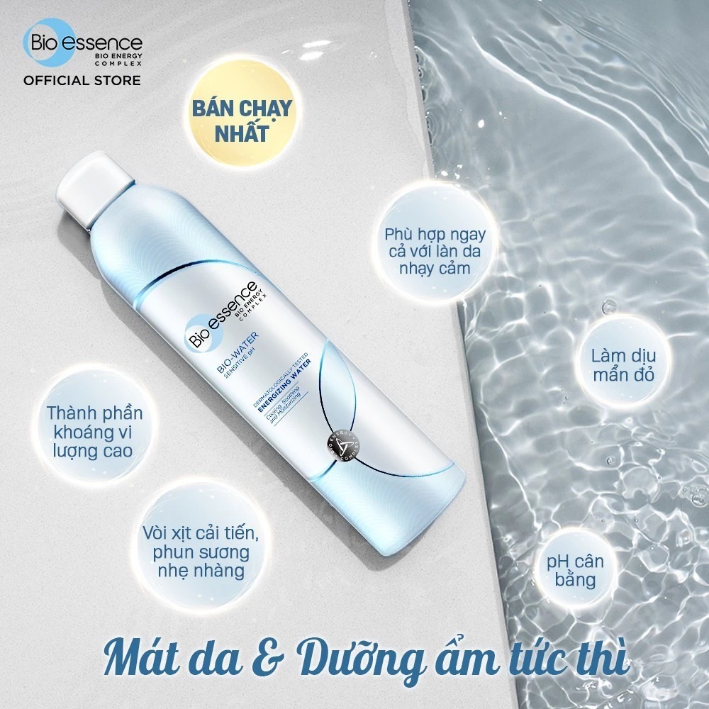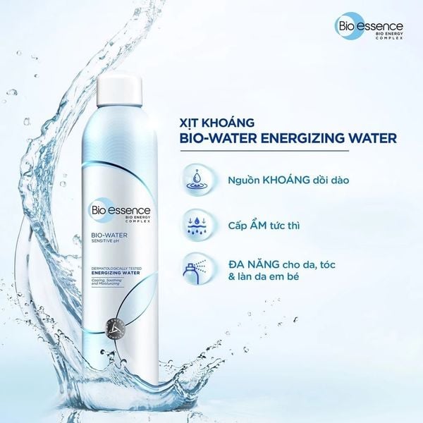 Bio Essence Xịt khoáng Water Energizing Water 300ml với nguồn khoáng vi lượng dồi dào và khả năng cấp ẩm mạnh mẽ kết hợp chế độ phun sương siêu mịn giúp dưỡng ẩm nhanh, làm dịu và duy trì độ ẩm lý tưởng cho da, bạn dễ dàng dưỡng ẩm và làm mát da mọi lúc mọi nơi.