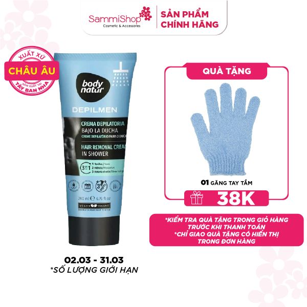 Body Natur Kem tẩy lông Depilmen Hair Removal Cream In Shower còn được nâng cấp với công thức 3 trong 1: tẩy lông, tẩy tế bào chết, làm sạch da. Cùng chiết xuất từ nhân sâm, trà xanh và tảo biển mang đến sự thư giãn với hương thơm dịu nhẹ trong khi tắm, giúp hỗ trợ cải thiện độ đàn hồi, đem đến làn da tươi trẻ, sạch lông.