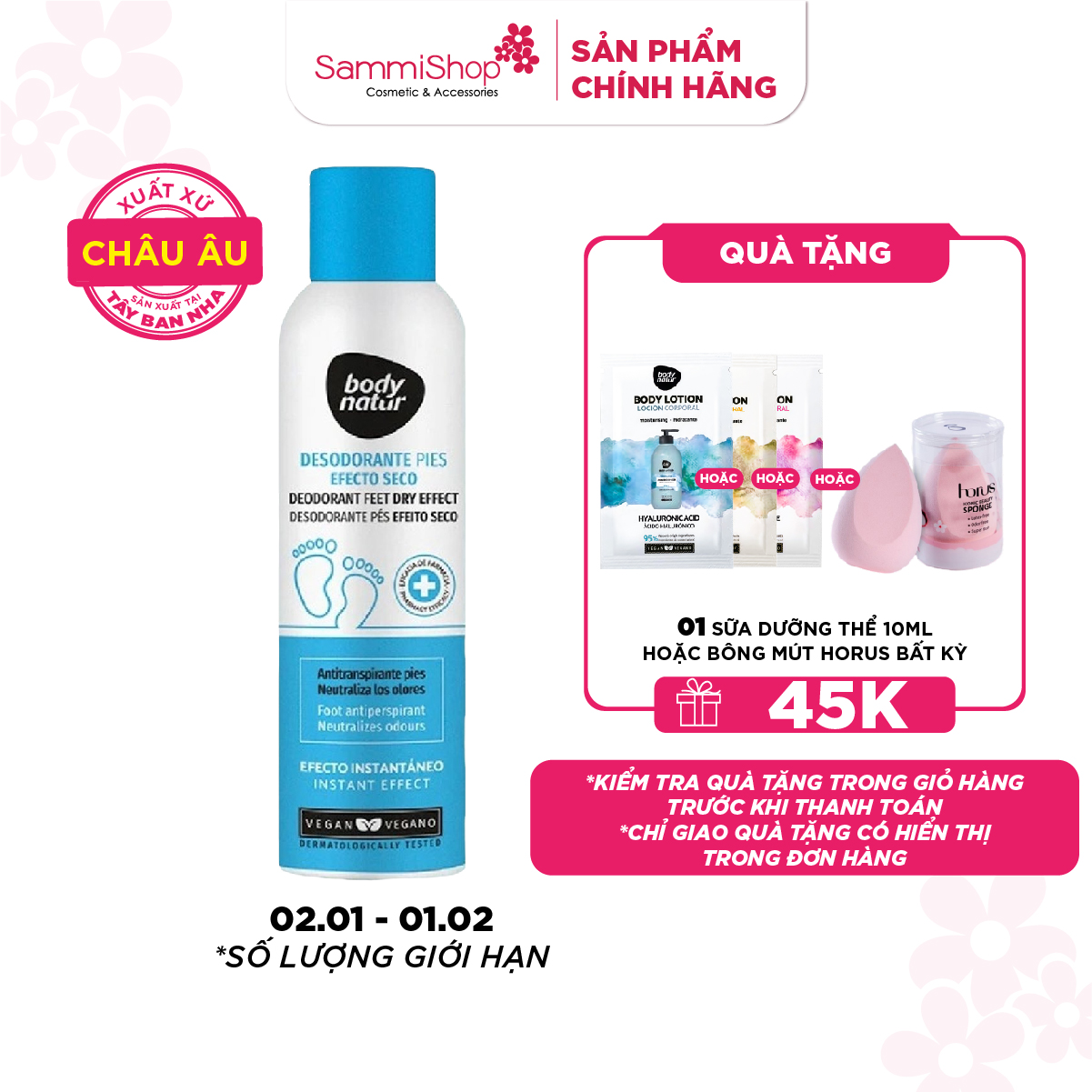 Body Natur Xịt Khử Mùi Chân Deodorant Feet Dry Effect Foot Antiperspirant 150ml là giải pháp hoàn hảo cho đôi chân luôn khô thoáng và thơm mát suốt cả ngày dài. Nổi bật với chất khử mùi chống mồ hôi đảm bảo hiệu quả bằng tác động kép là điều tiết mồ hôi, giúp chân luôn khô thoáng và đồng thời cũng ngăn chặn sự phát triển của vi khuẩn gây mùi một cách mạnh mẽ. Giúp bạn giữ cho bàn chân luôn được khô thoáng, không có mùi hôi, tự tin và thoải mái hoạt động cả ngày dài.