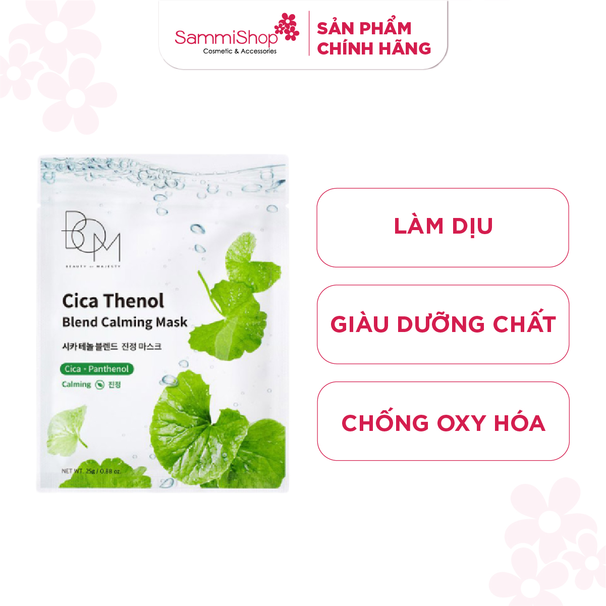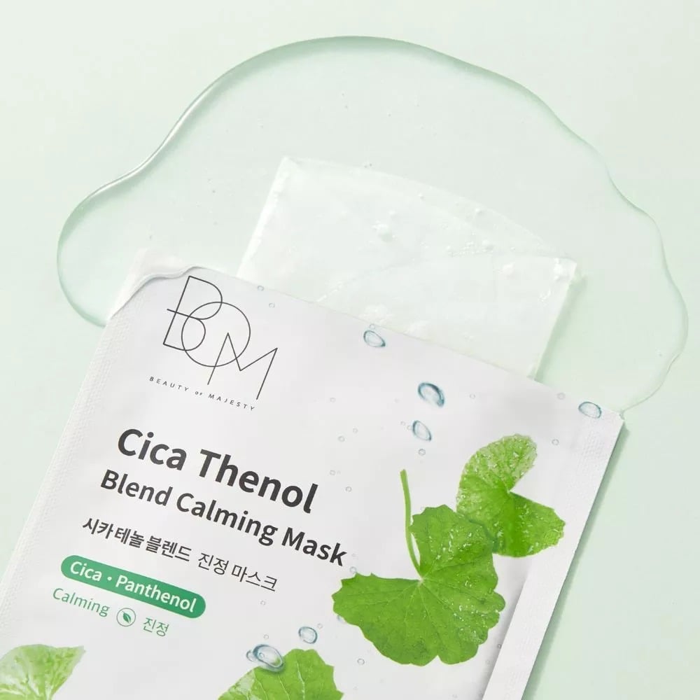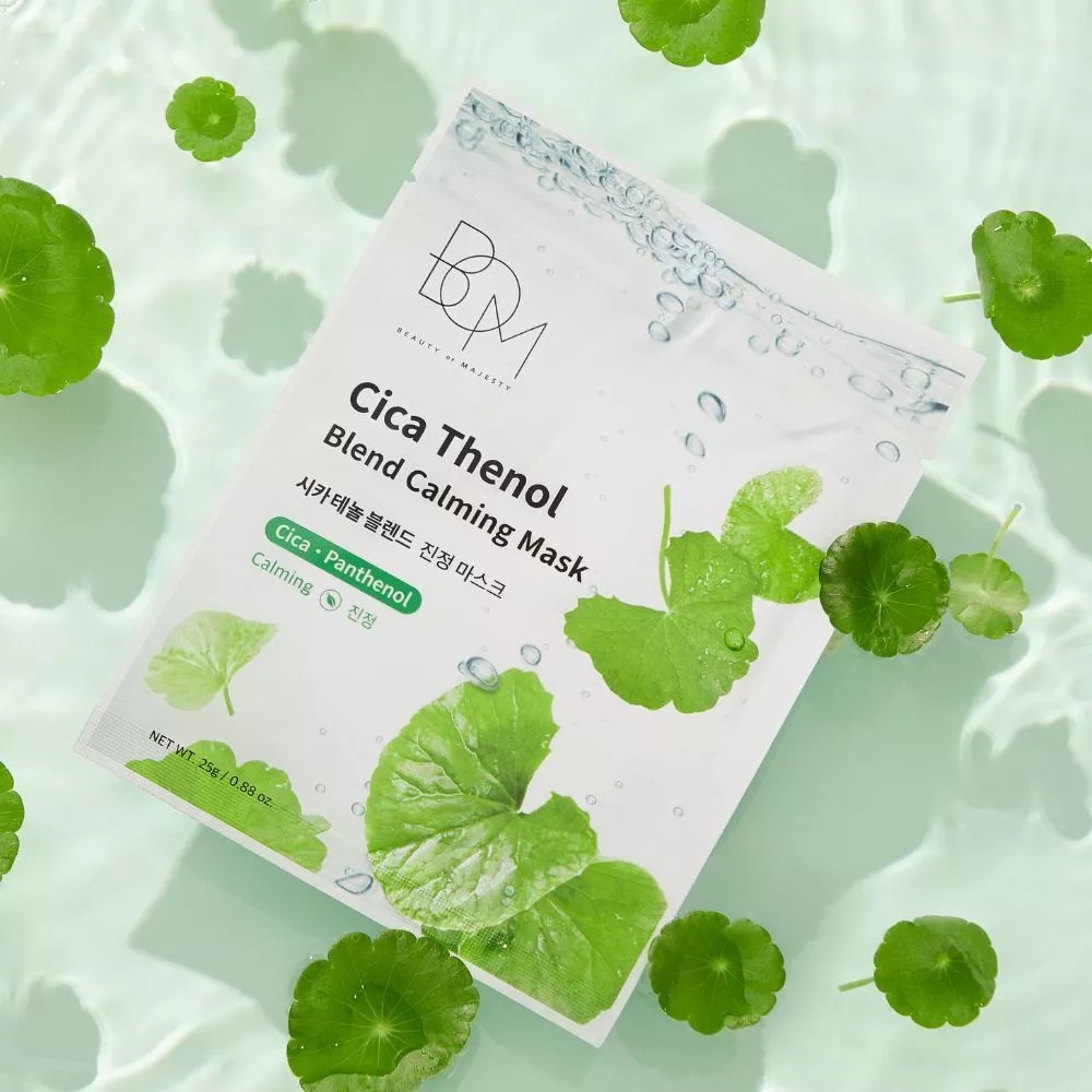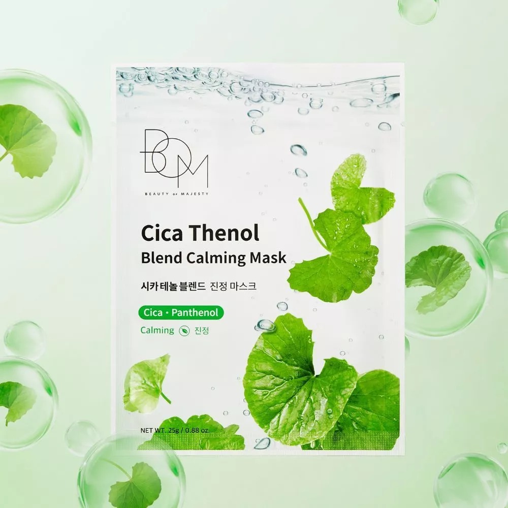 BOM Mặt nạ Cica Thenol Blend Calming Mask 25g hỗ trợ làm sạch bề mặt da và giảm tình trạng da không đều màu, mang lại cảm giác thông thoáng hơn cho da.
