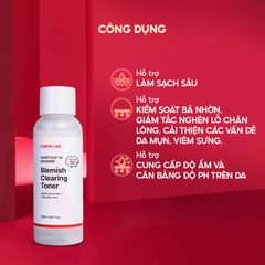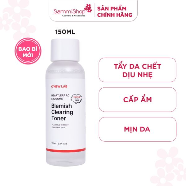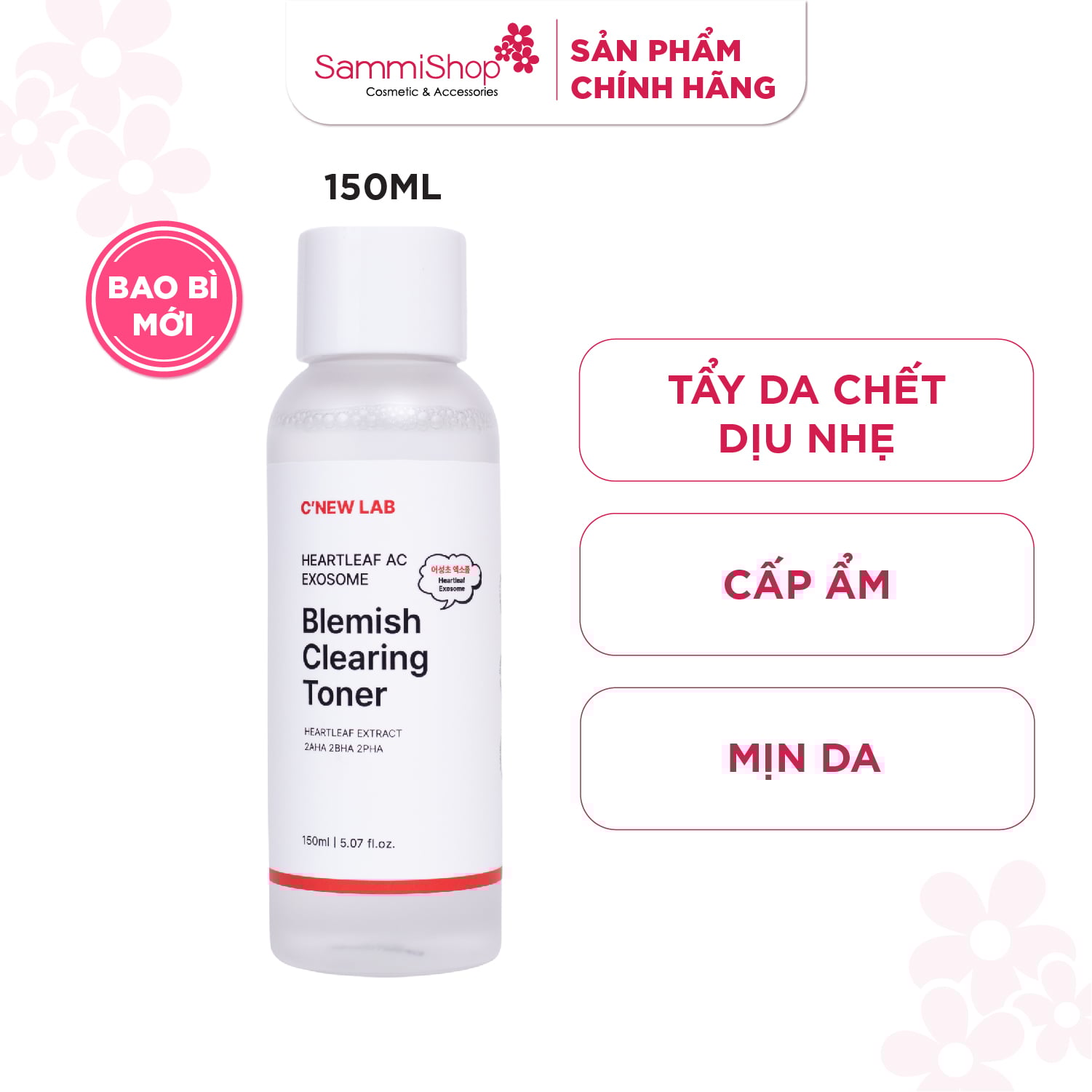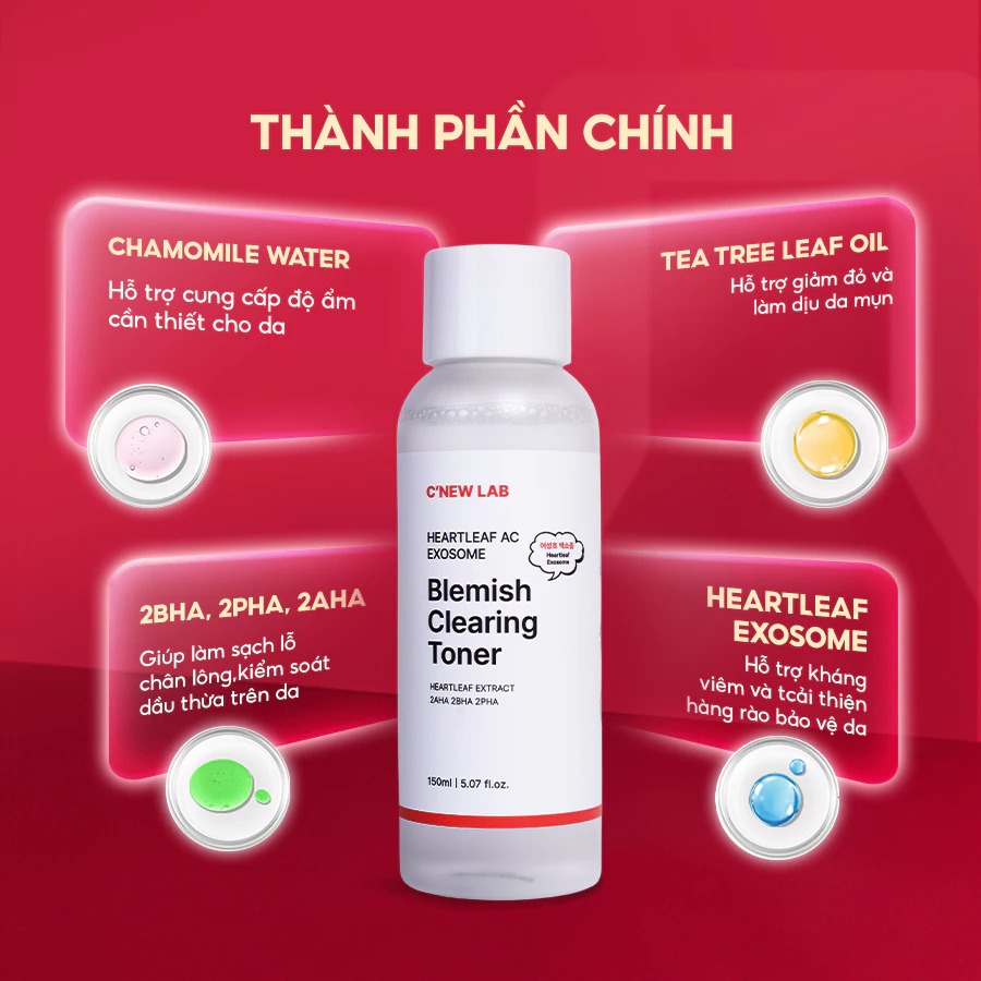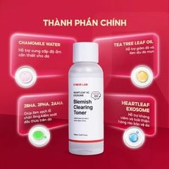 Nước hoa hồng C'New Lab Heartleaf Ac Blemish Clearing Toner Chứa 2AHA + 2BHA + 2PHA cùng Tràm trà, Cúc Lã Mã và Panthenol giúp làm sạch sâu, kiểm soát bã nhờn, giảm các vết sưng đỏ do mụn và ngăn ngừa các bệnh về viêm da, mụn hiệu quả.