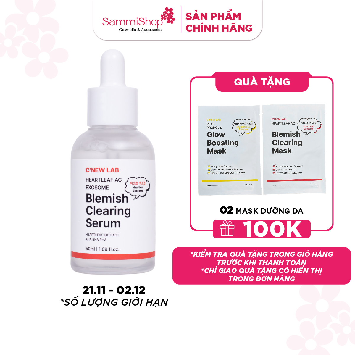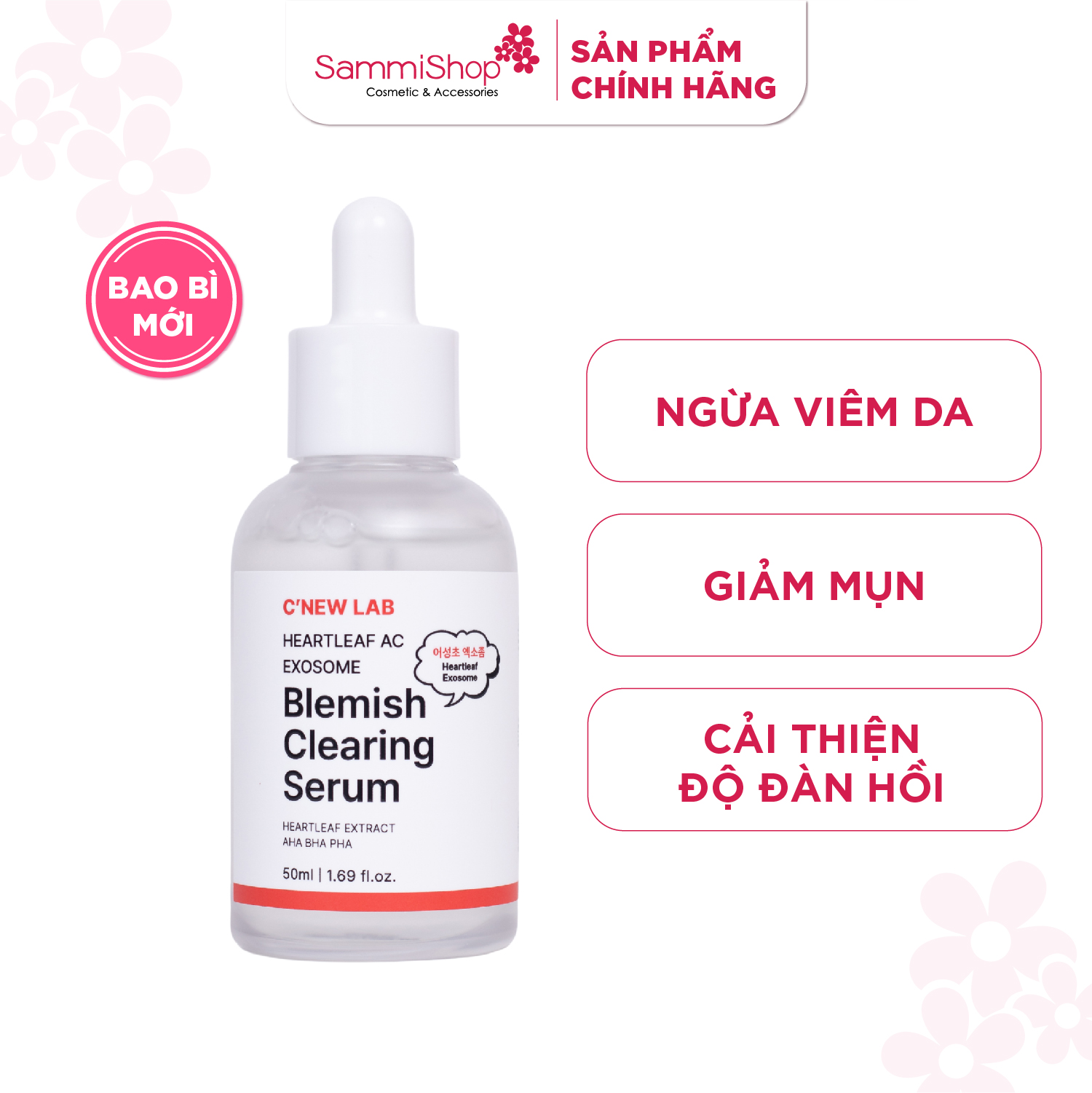 Tinh chất C'New Lab Heartleaf Ac Blemish Clearing Serum chứa tổ hợp AHA + BHA + PHA cùng tinh chất cây chè, rau má, cúc la mã có tác dụng kiểm soát bã nhờn, cung cấp độ ẩm cho da và giảm viêm sưng, cải thiện tình trạng mụn hiệu quả cao.