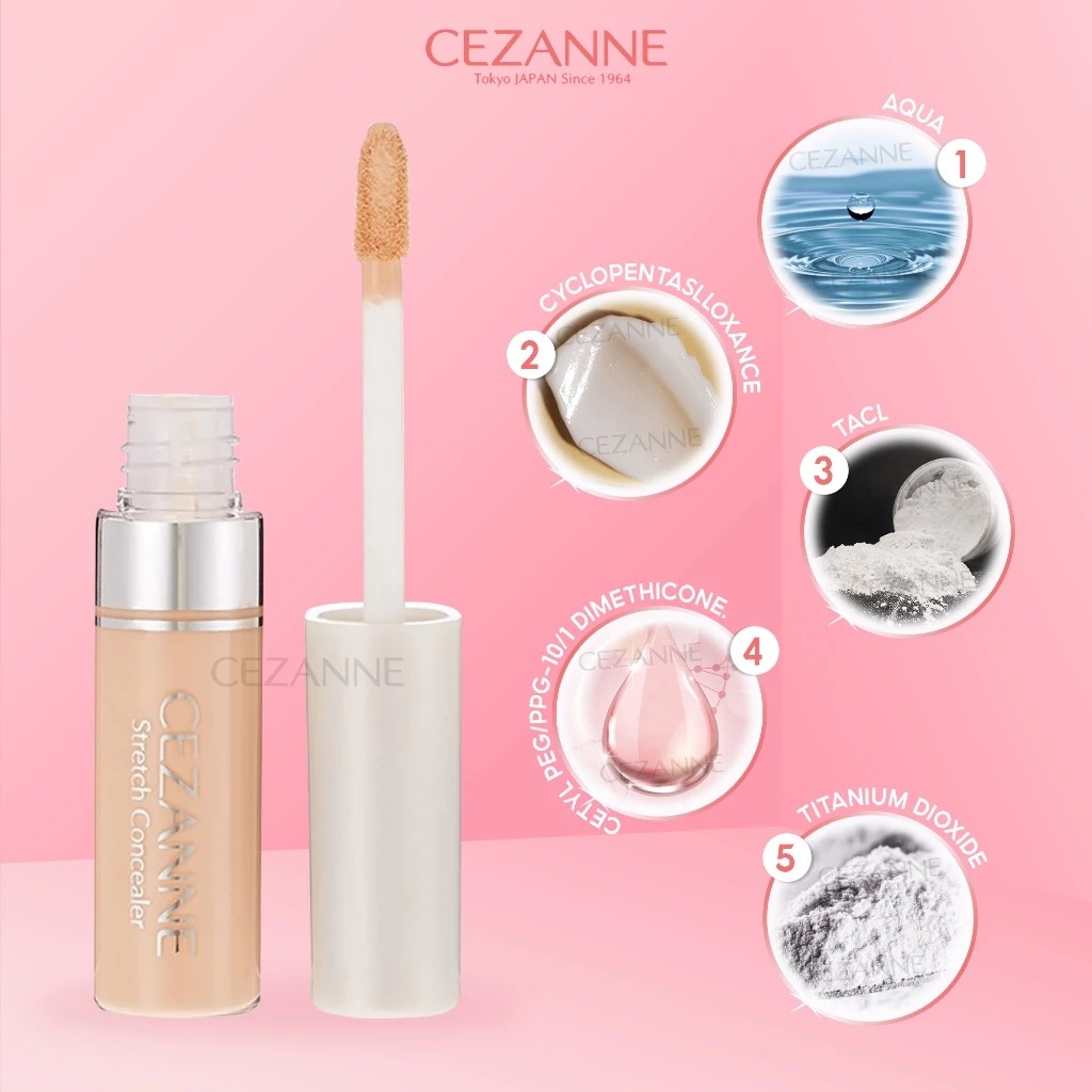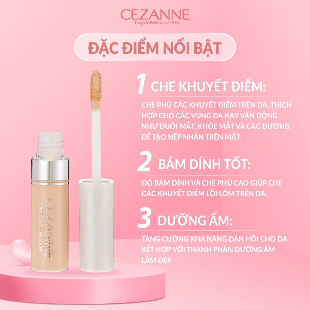 Cezanne Kem che khuyết điểm Stretch Cover Concealer 8g che phủ các khuyết điểm trên da. Thích hợp cho các vùng da hay vận động như đuôi mắt, khóe miệng và các đường dễ tạo nếp nhăn trên khuôn mặt khi nói khi cười. Độ bám dính và bao phủ cao giúp che khuyết điểm hoàn hảo.