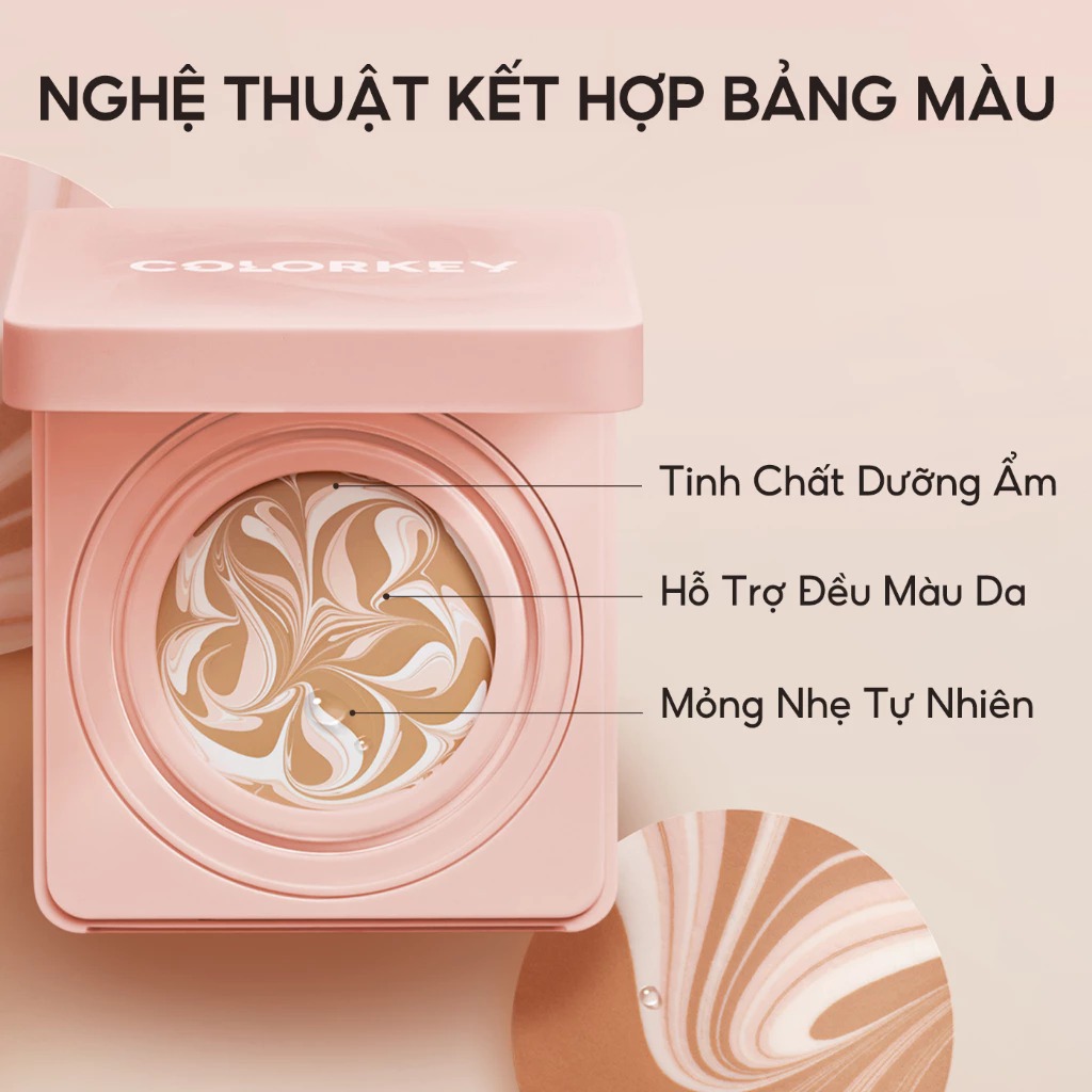 COLORKEY Phấn tươi Watery Essence Foundation Balm 9g mang lại lớp nền căng bóng tự nhiên, với chất phấn dễ tệp vào da hạn chế làm nền mốc.