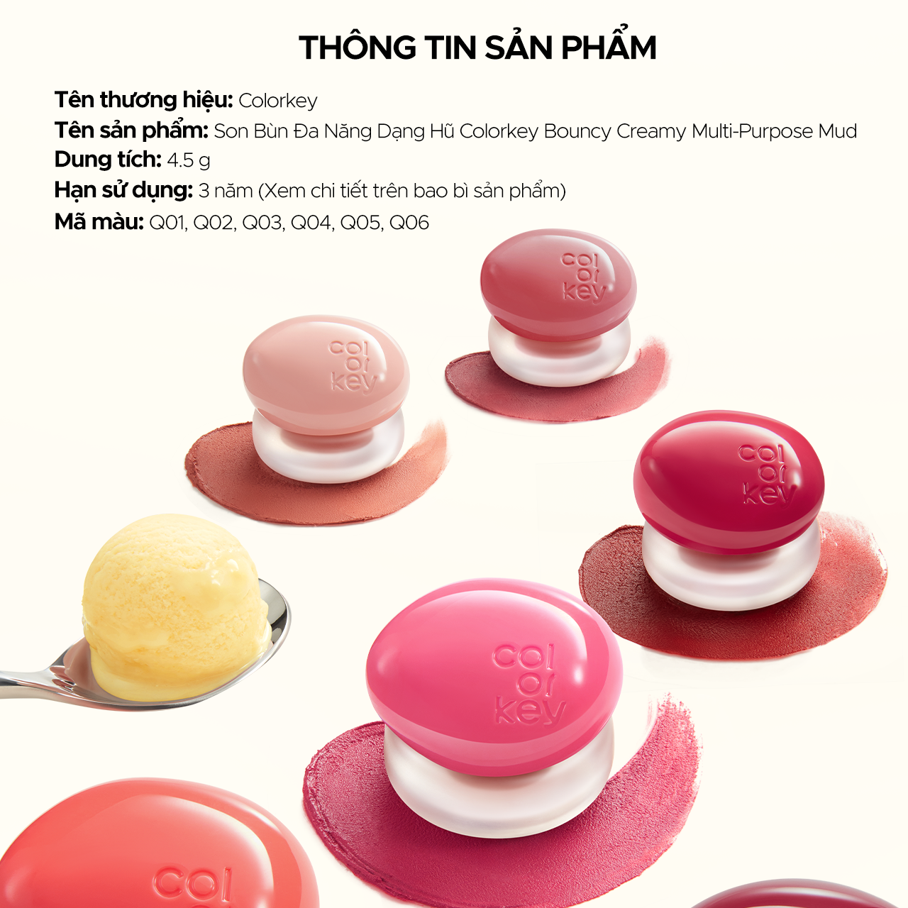 COLORKEY Son bùn đa năng dạng hũ Bouncy Creamy Multi-Purpose Mud vô cùng tiện lợi với kích thước nhỏ gọn cũng như cấu tạo dễ tán, giúp bạn nhanh chóng trang điểm cho những buổi sáng vội vã.