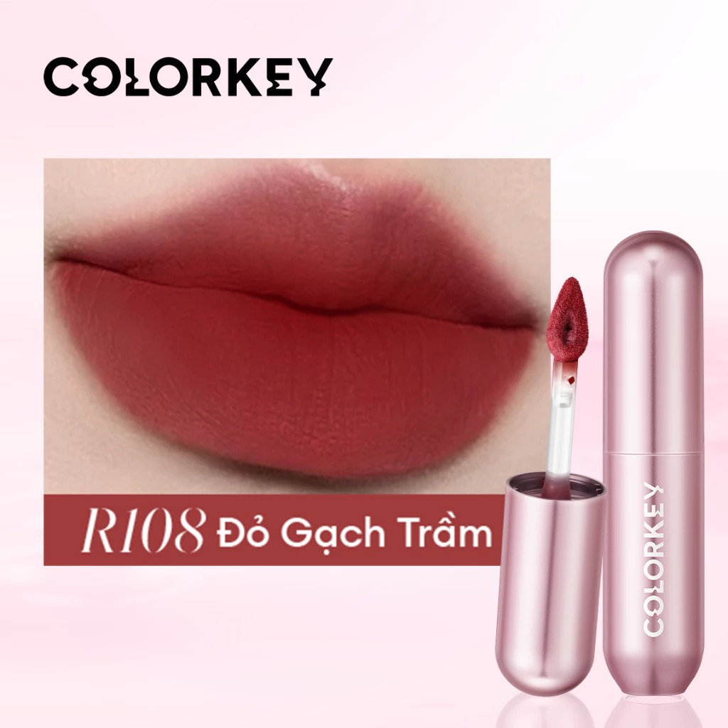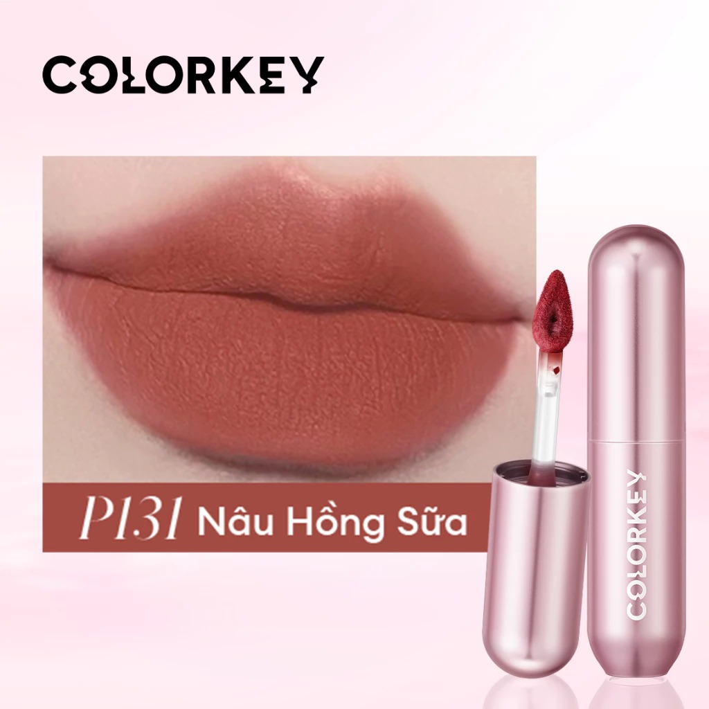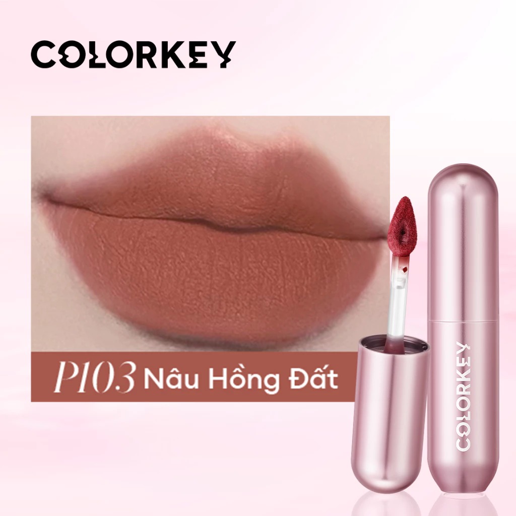 COLORKEY Son bùn Mousse Matte Lip Mud với chất son bông mịn như “kem đất”, bám màu tốt nhưng vẫn nhẹ môi. Lớp màu đậm chuẩn, không bột – cho hiệu ứng son lì nhung thời thượng mà không hề khô hay nặng môi