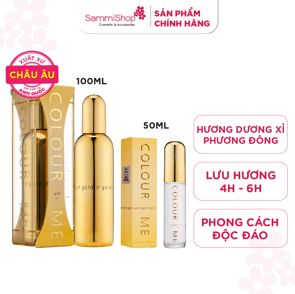 Colour Me Nước hoa Gold Eau De Parfum mang đến ấn tượng về sự tươi mát của bưởi, sự dịu ngọt của quýt hồng ngọc và dương xỉ; kết hợp với sự nồng nàn của quế và hương hoa hồng quyến rũ. Điểm nhấn phóng khoáng của hoắc hương hòa cùng hổ phách tạo nên một trải nghiệm đầy mê hoặc.