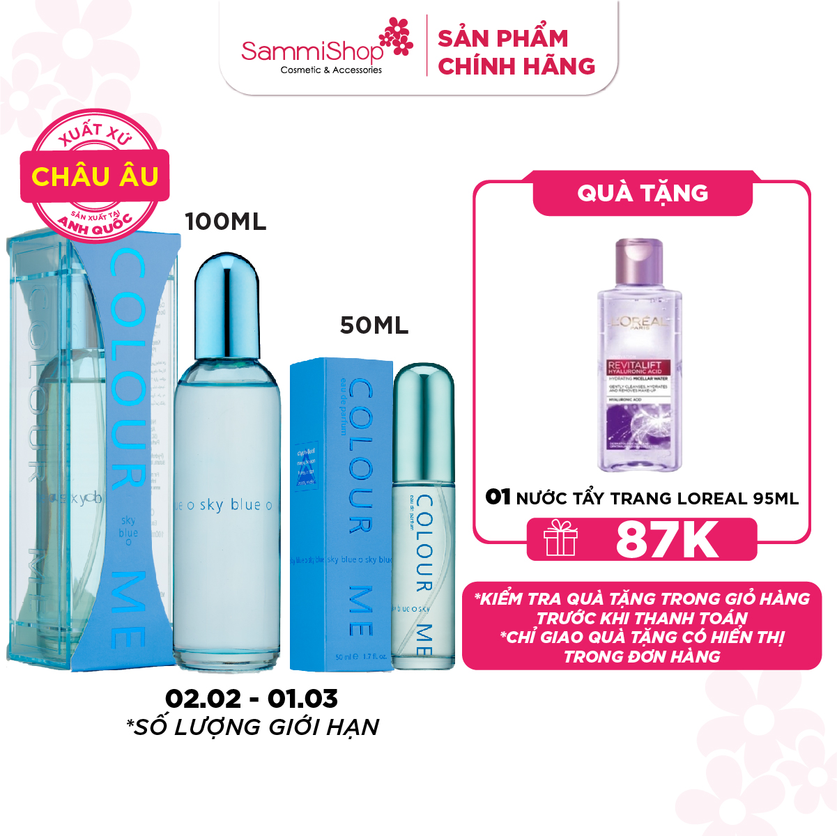 Colour Me Nước hoa Sky Blue Eau De Parfum là phiên bản nước hoa gợi cảm, với hương đầu ngọt nhẹ từ hoa lan Nam Phi, quả đào hòa quyện cùng hoa nhài thơm mát. Nét quyến rũ chấm phá từ xạ hương và gỗ hổ phách, tạo nên một trải nghiệm hương thơm đầy mê hoặc.