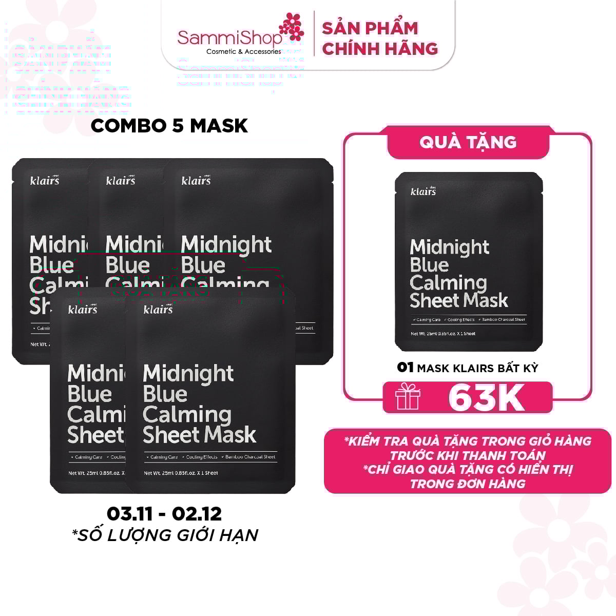 1. Mặt nạ giấy làm dịu da Midnight Blue Calming Sheet Mask đến từ thương hiệu Dear Klairs thuộc dòng Midnight Blue chuyên biệt cho da nhạy cảm và dễ kích ứng, giúp làm dịu da giảm viêm sưng, mẩn đỏ hiệu quả, được rất nhiều tín đồ làm đẹp ưa chuộng.