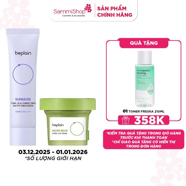 Kem chống nắng Beplain Sunmuse Mineral Sunscreen là kem chống nắng vật lí với chiết xuất từ các Superfood xanh giúp bảo vệ da mạnh mẽ hơn với ánh nắng mặt trời. Công thức vật lý dịu nhẹ, kiềm dầu, đảm bảo an toàn cho cả làn da nhạy cảm nhất hoặc với phụ nữ có thai.