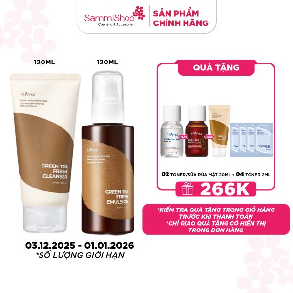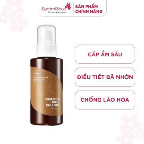 Isntree Sữa Dưỡng Green Tea Fresh Emulsion 120ml với 5% chiết xuất trà xanh Jeju cùng phức hợp Anti-sebum P giúp cấp ẩm và nuôi dưỡng da. Sản phẩm chuyên biệt cho da dầu/da hỗn hợp thiên dầu cần 1 sản phẩm cẩp ẩm lành tính, thấm nhanh, không gây bí da hay bít tắc lỗ chân lông.