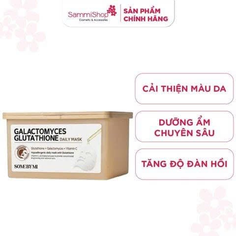 Some By Mi Hộp mặt nạ giấy Galactomyces Glutathione Daily Mask 350ml (hộp 30 miếng) lành tính với da nhạy cảm. Với cấu tạo miếng mặt nạ mỏng nhẹ, giúp dưỡng chất thấm nhanh vào da, để lại làn da ẩm mượt mà không có cảm giác nhờn rít.