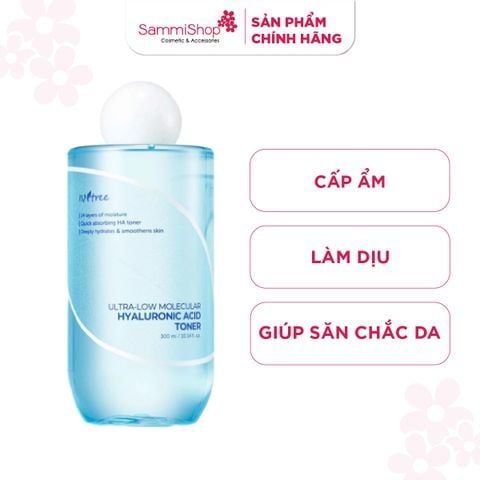 Isntree Nước Hoa Hồng Ultra-Low Molecular Hyaluronic Acid Toner 300ml với 14 loại HA đa phân tử cùng 10,000 ppm nước biển sâu giúp cấp ẩm tức thì chỉ trong 3s và giữ ẩm suốt 24h. Sản phẩm chuyên biệt cho da dầu/da hỗn hợp thiên dầu/da dầu thiếu ẩm cần 1 sản phẩm cấp ẩm chuyên sâu với kết cấu lỏng nhẹ, công thức thẩm thấu nhanh, không gây nhờn dính.