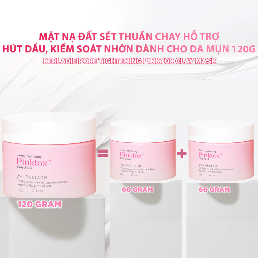 Derladie Mặt Nạ Đất Sét Pore Tightening Pink Tox Clay Mask à giải pháp HÚT DẦU, KIỂM SOÁT NHỜN TRONG 12H độc quyền dành cho làn da mụn. Thành phần LÀNH TÍNH + công thức được kiểm nghiệm bởi chuyên gia + khả năng hút dầu, kiềm nhờn vượt trội, sản phẩm làm sạch sâu mang đến làn da mịn màng, khỏe mạnh.