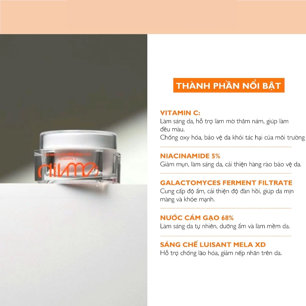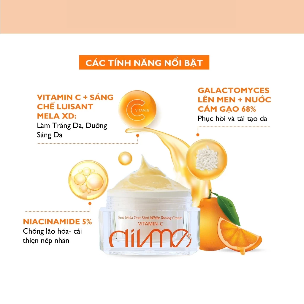 - Vitamin C giúp làm sáng, hỗ trợ mờ thâm nám, chống Oxy hóa làn da.