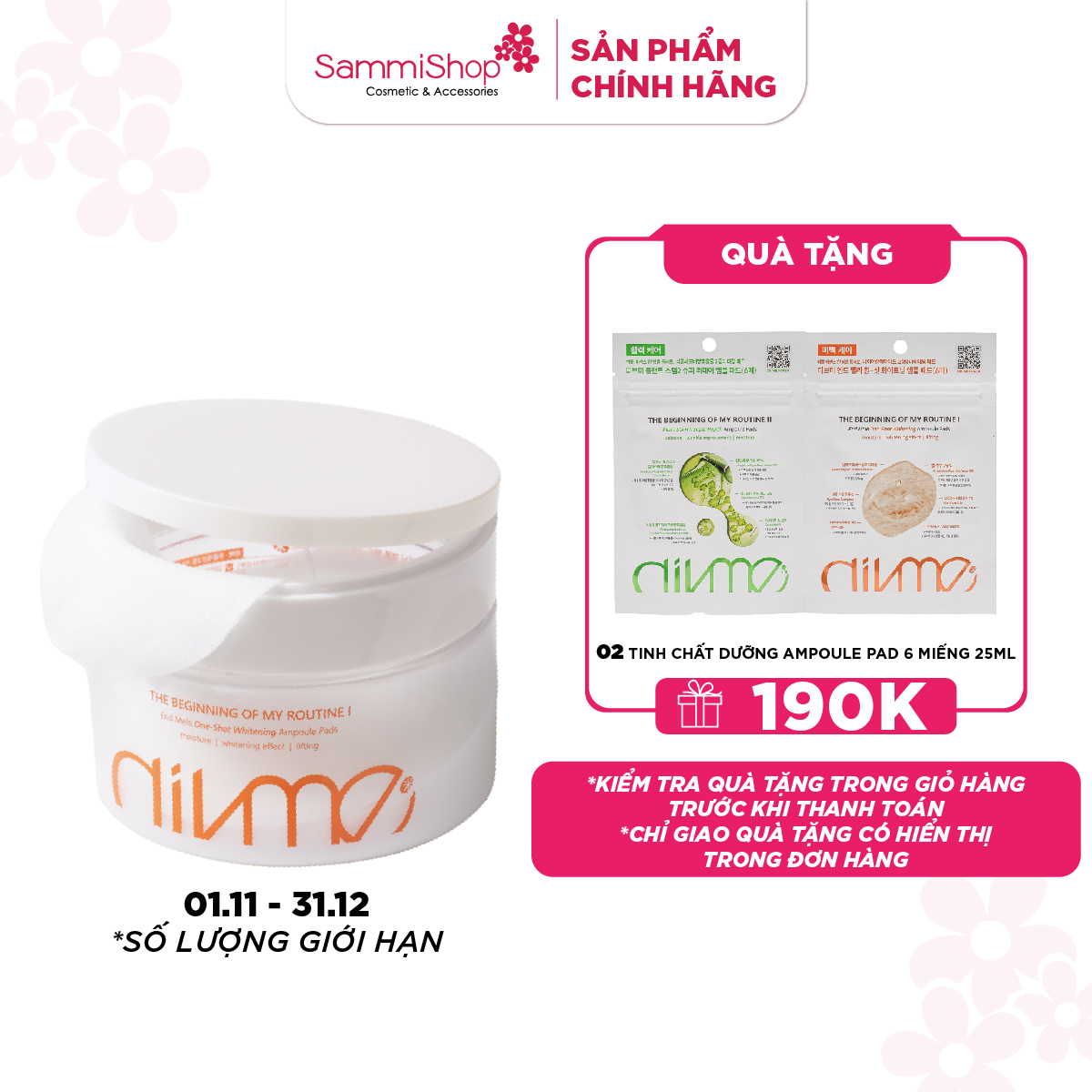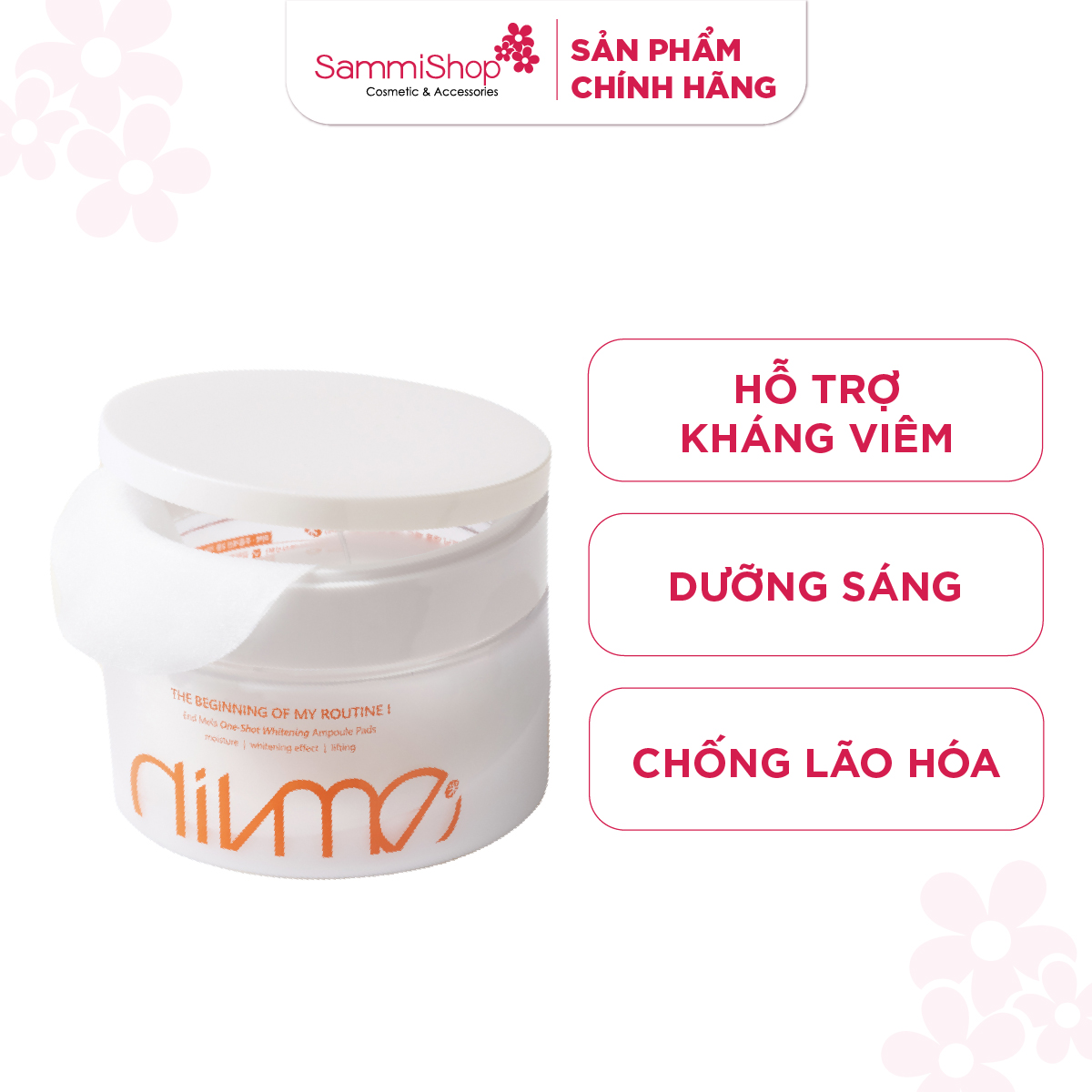 Divme Tinh chất dưỡng Ampoule Pad End Mela One-Shot Whitening 70 miếng 180ml là giải pháp 2 trong 1 giúp dưỡng da nhanh chóng và hiệu quả. Với thiết kế miếng pad thấm đẫm tinh chất ampoule, sản phẩm không chỉ tiết kiệm thời gian mà còn giúp dưỡng chất thẩm thấu sâu, mang lại làn da căng mịn, ẩm mượt. Chỉ cần một bước đơn giản, bạn đã có thể làm dịu, cấp ẩm và nuôi dưỡng làn da mà không cần dùng bông tẩy trang hay tay để thoa sản phẩm.