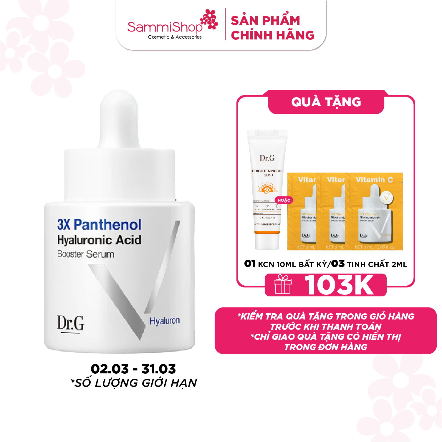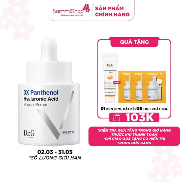 Dr.G Tinh chất 3X Panthenol Hyaluronic Acid Booster Serum 30ml giúp làm dịu da, giảm kích ứng và phục hồi nhanh hàng rào bảo vệ da bị tổn thương do khô căng, bong tróc hoặc sau peel/retinol.