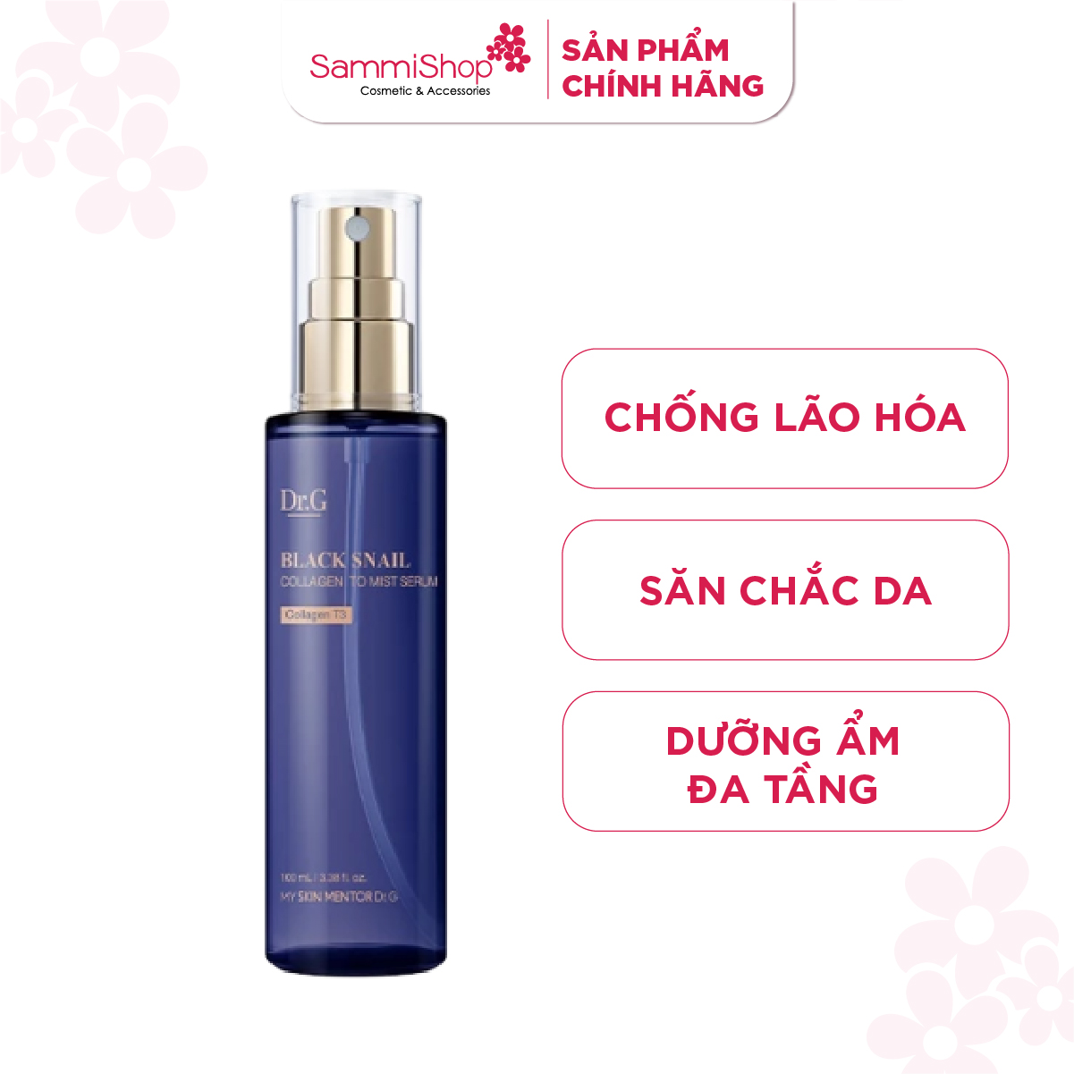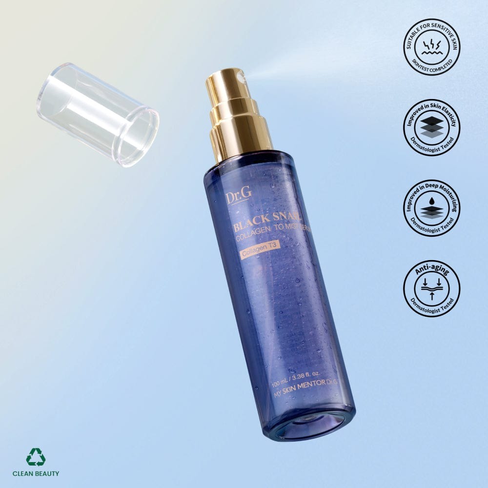 Dr.G Tinh chất Black Snail Collagen To Mist Serum 100ml với dung tích lớn cùng đầu xịt phun sương giúp dễ dàng bổ sung độ ẩm cho da bất cứ lúc nào