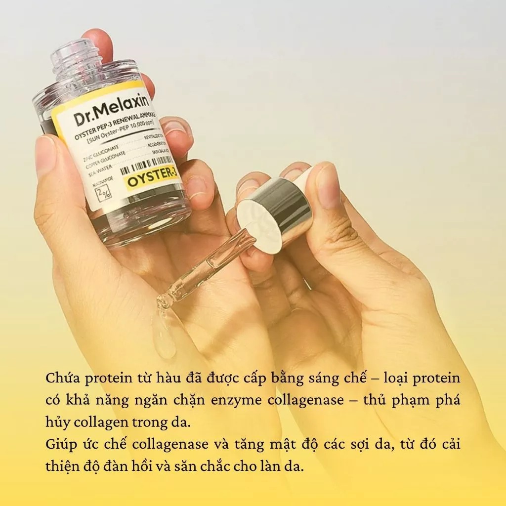 Dr. Melaxin Tinh chất -5.7 Oyster Pep-3 Renewal Ampoule 30ml ứng dụng công nghệ độc quyền chiết xuất từ hàu Sun Oyster, mang lại hiệu quả cải thiện rõ rệt các dấu hiệu tuổi tác chỉ sau 4 tuần sử dụng.